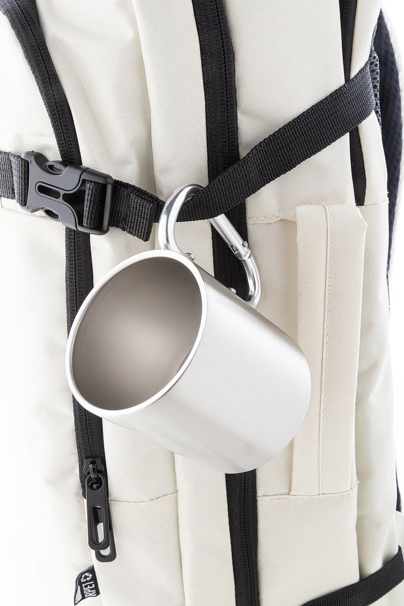 Tazza mug in acciaio da 200ml. con moschettone colorato e confezione in scatola.