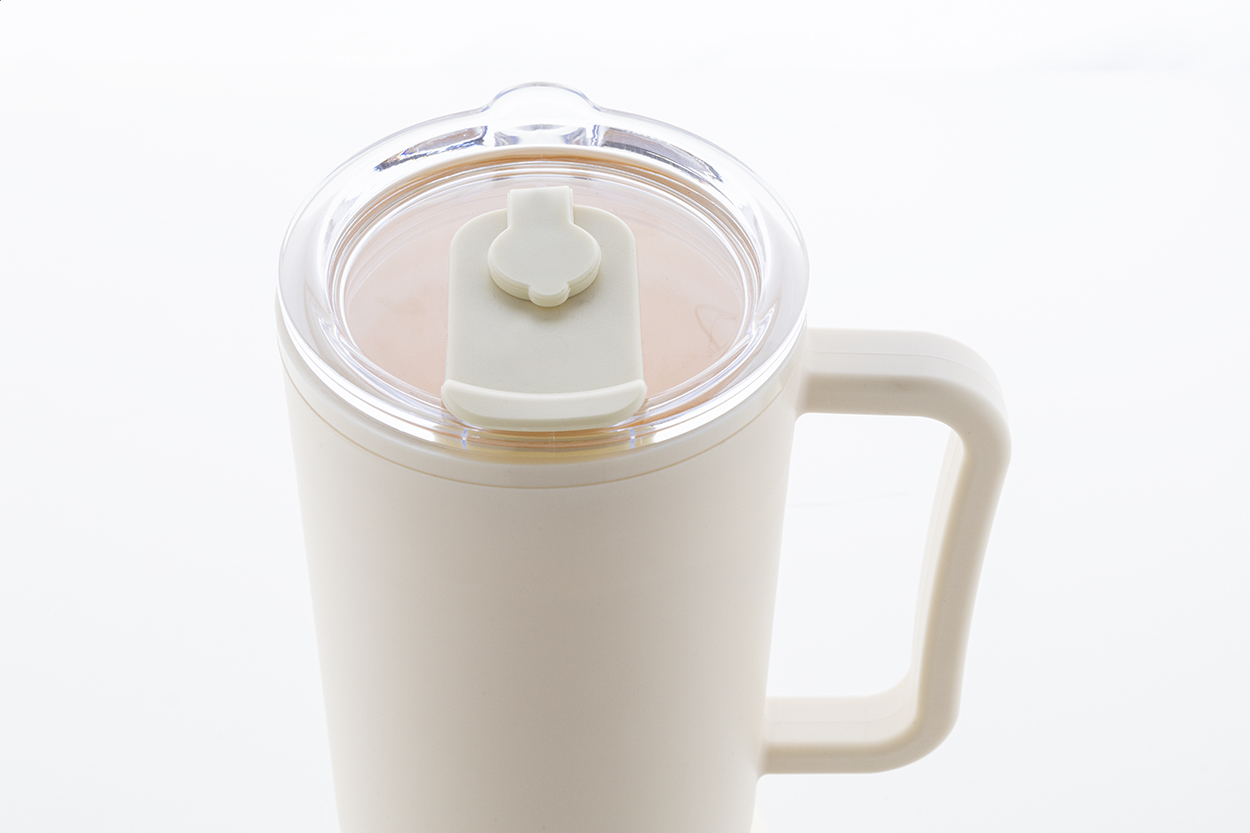 Tazza mug termica da 1100ml. in plastica PP a doppia parete con coperchio e cannuccia.