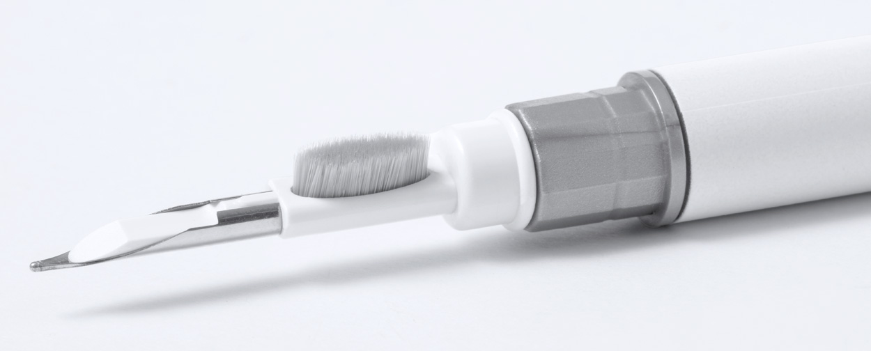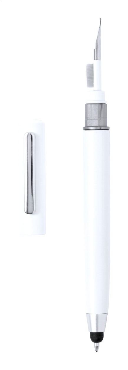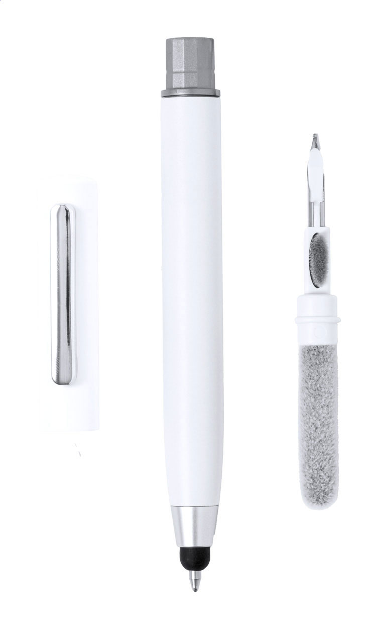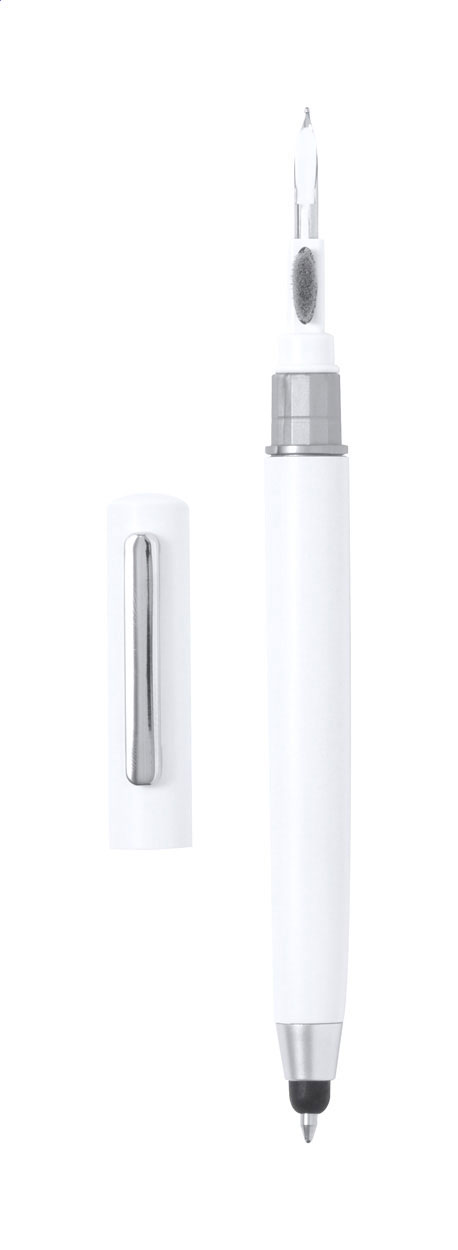 Penna a sfera capacitiva in plastica ABS con meccanismo di apertura a rotazione e kit di pulizia per auricolari integrato. Refill blu.