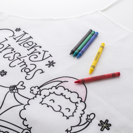 Grembiule a tema natalizio da colorare in tessuto non tessuto RPET con 5 pastelli.
