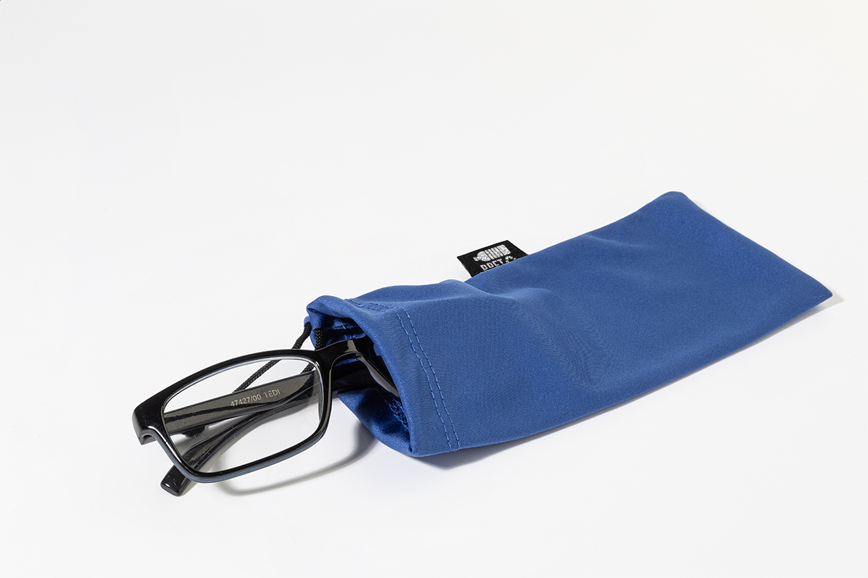 Custodia per occhiali da sole in poliestere RPET con chiusura a coulisse.