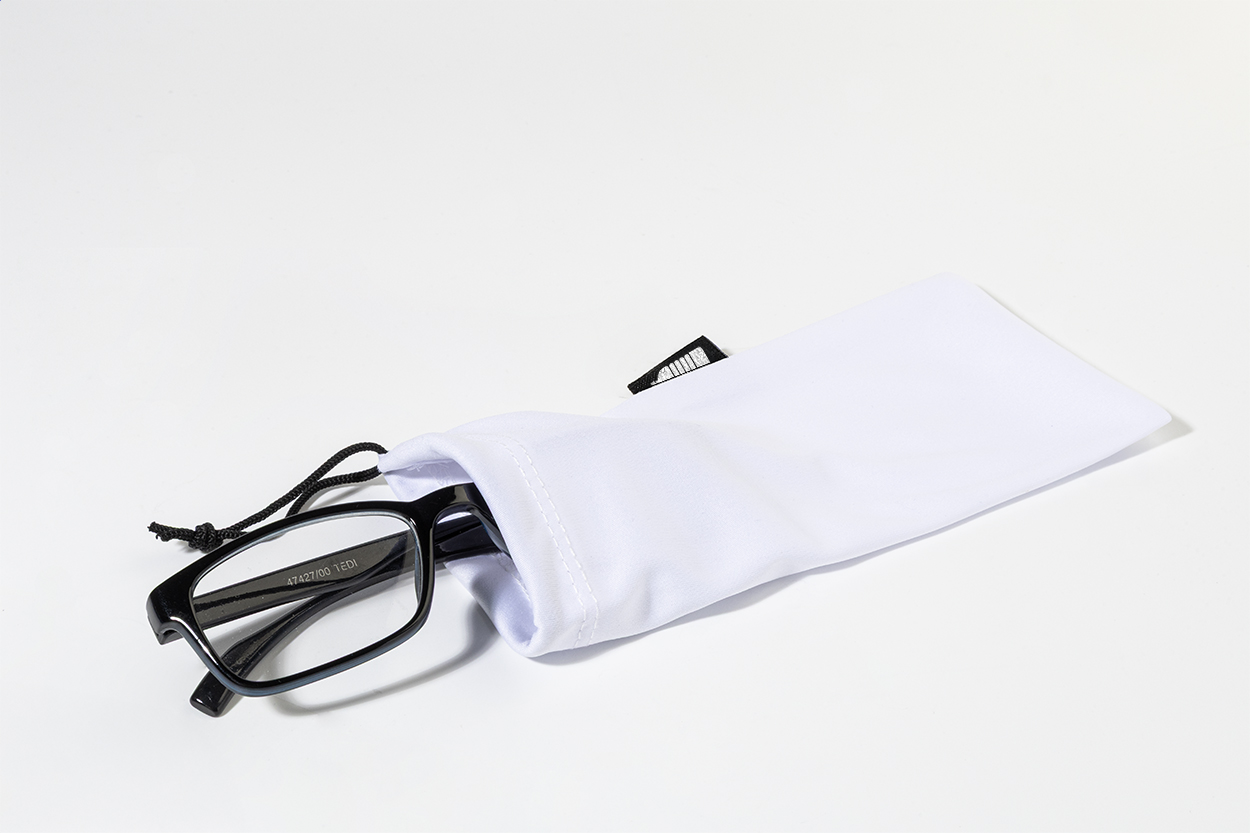 Custodia per occhiali da sole in poliestere RPET con chiusura a coulisse.
