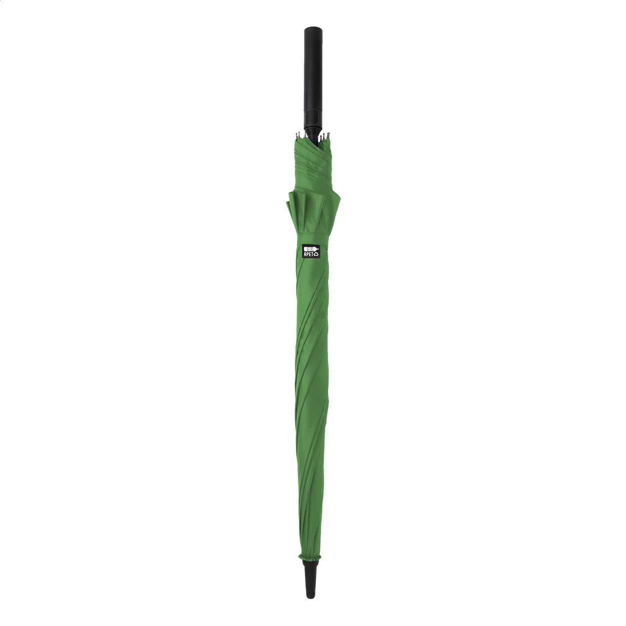 Ombrello in pongee RPET 190T automatico antivento di grandi dimensioni a 8 pannelli, fusto e struttura in fibra di vetro, manico in ABS ed etichetta RPET.