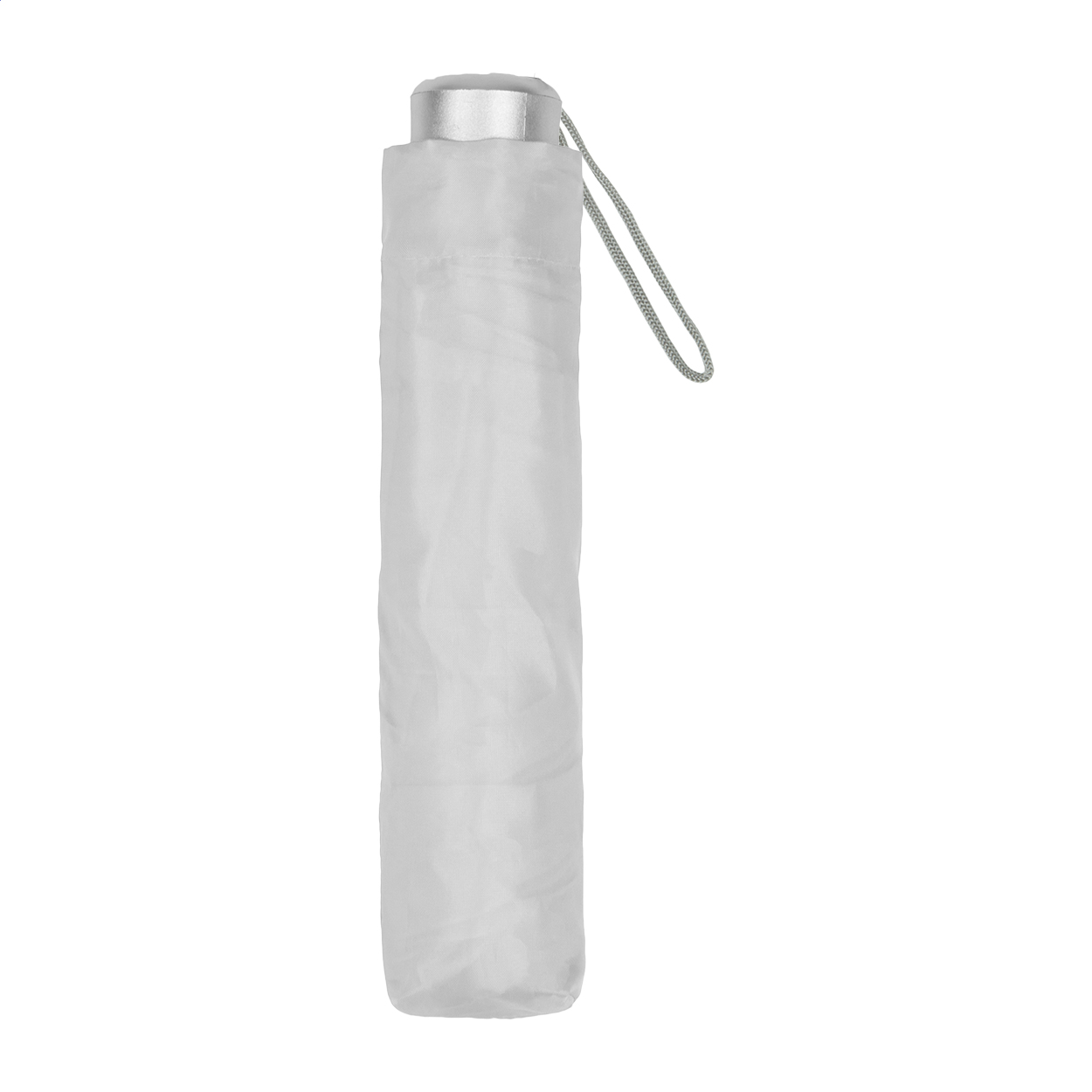 Ombrello pieghevole manuale con 8 pannelli, con struttura e stecche in metallo e fodera coordinata. Materiale: poliestere 170T.