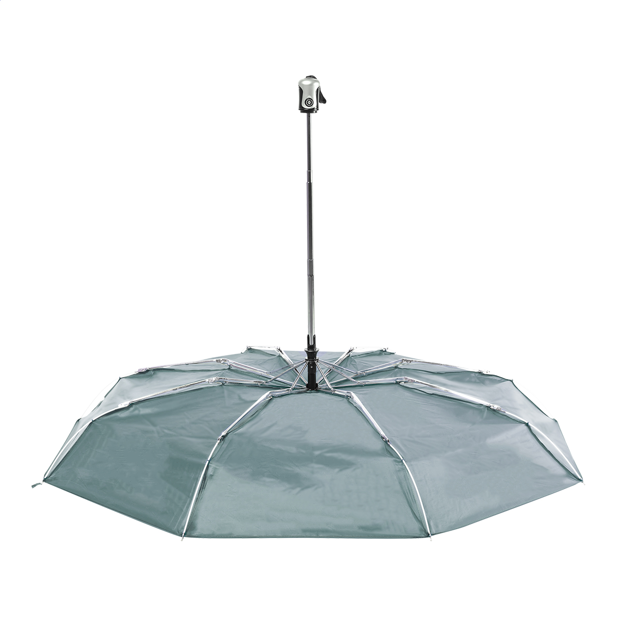 Ombrello pieghevole antivento con 8 pannelli completamente automatico (aperto/chiuso). Con fusto in metallo, telaio in metallo/fibra di vetro, manico in plastica e fodera in colore coordinato. Poliestere 190T.