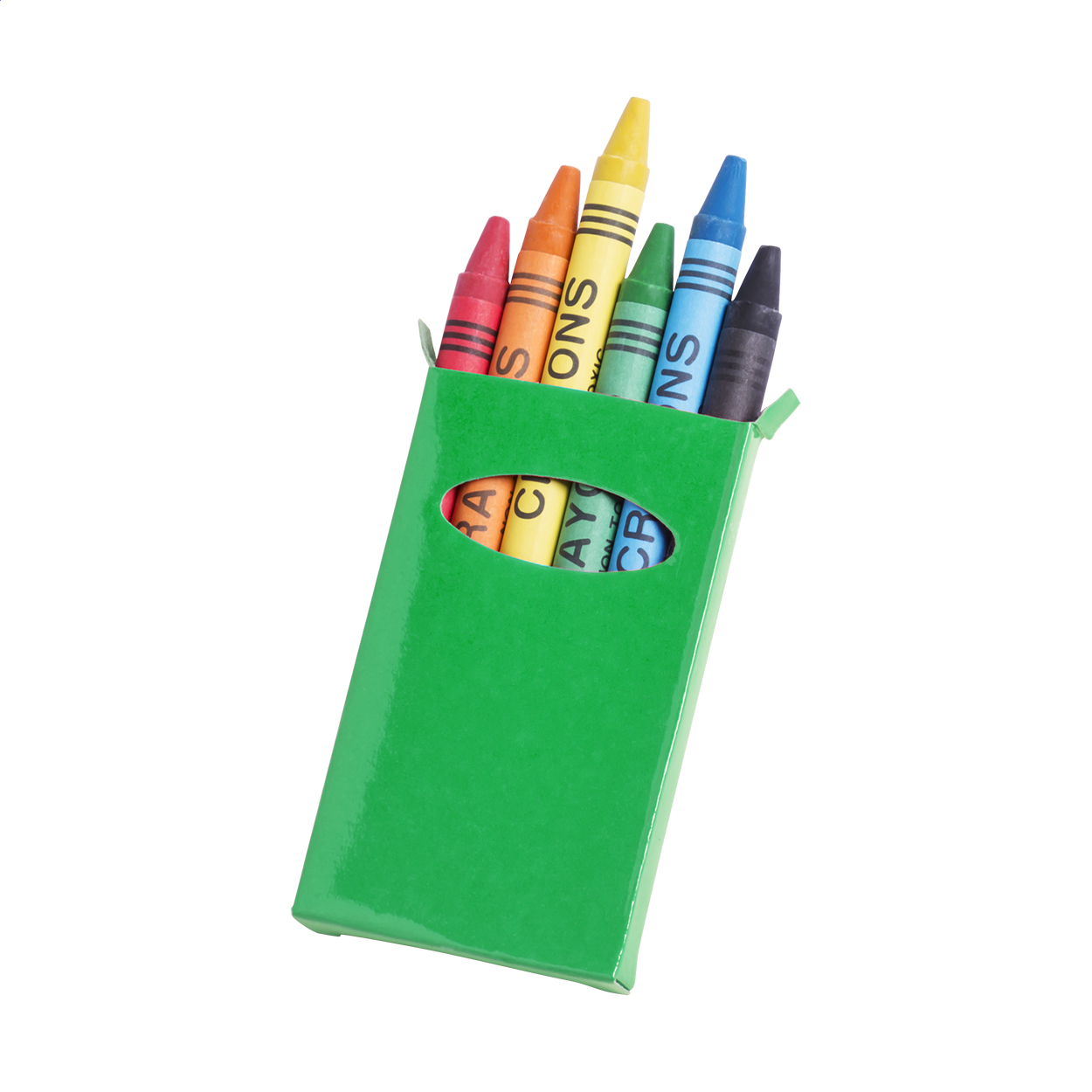 Set 6 pezzi di pastelli colorati confezionati in una scatola colorata di cartoncino.
