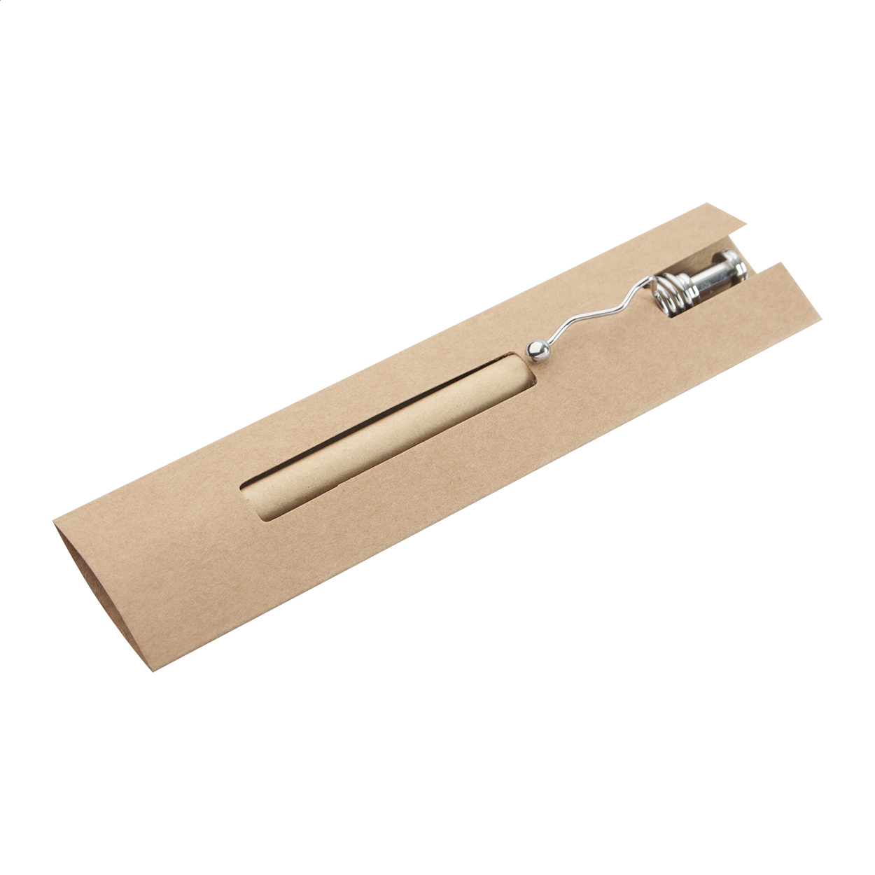 Penna a sfera con custodia, realizzata in carta riciclata. Con refill blu.