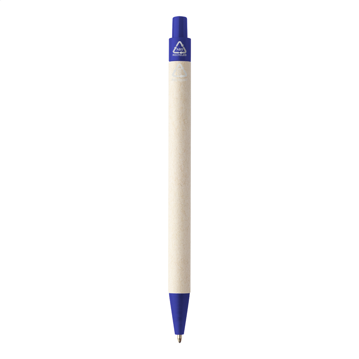 Penna a sfera realizzata con carta di cartone del latte riciclata, parti in plastica ABS riciclata e refill blu.