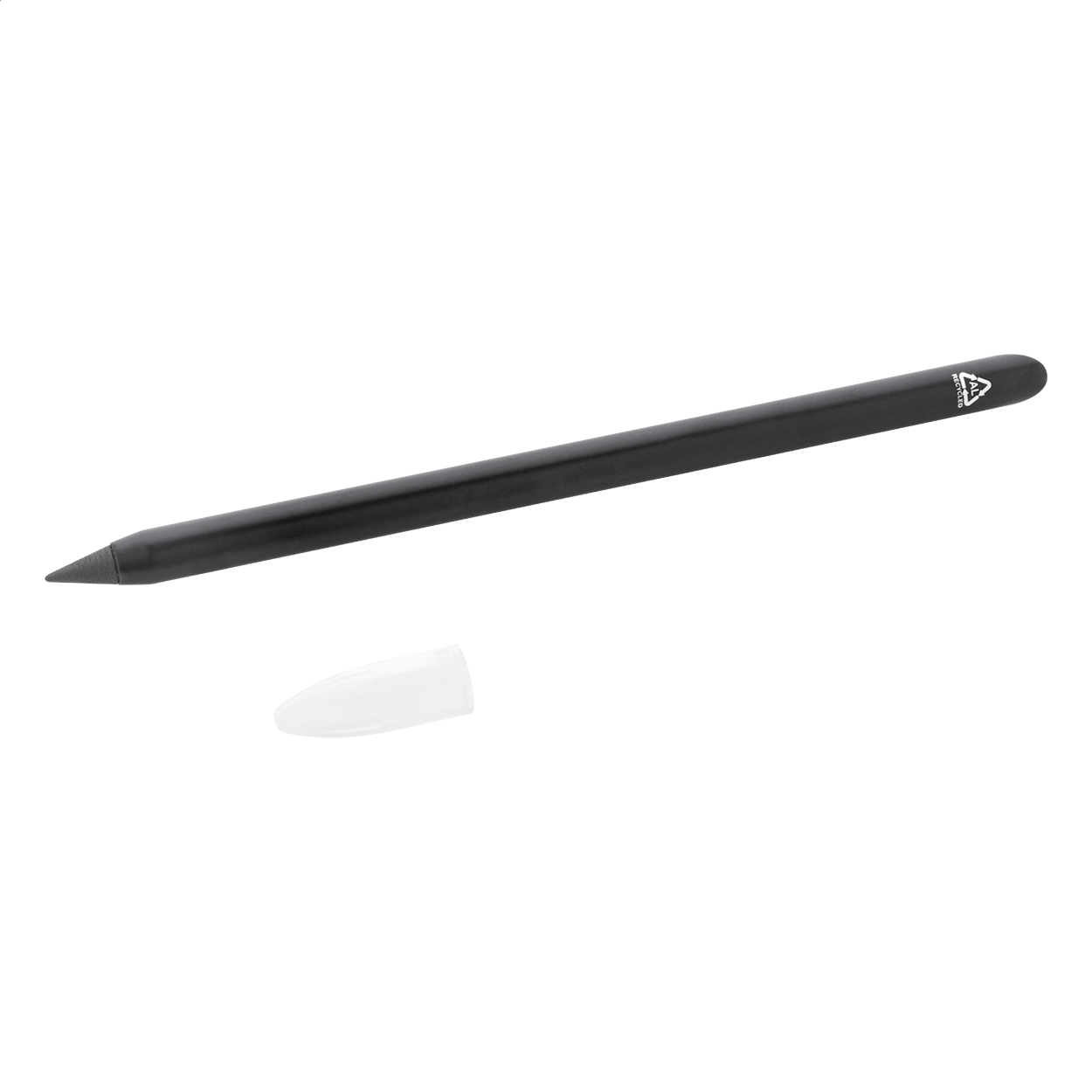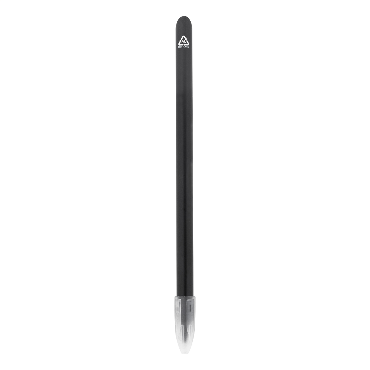 Penna senza inchiostro in alluminio riciclato con punta in lega metallica che ossida la carta. Questa penna scrive in modo simile a una matita ed è anche cancellabile.
