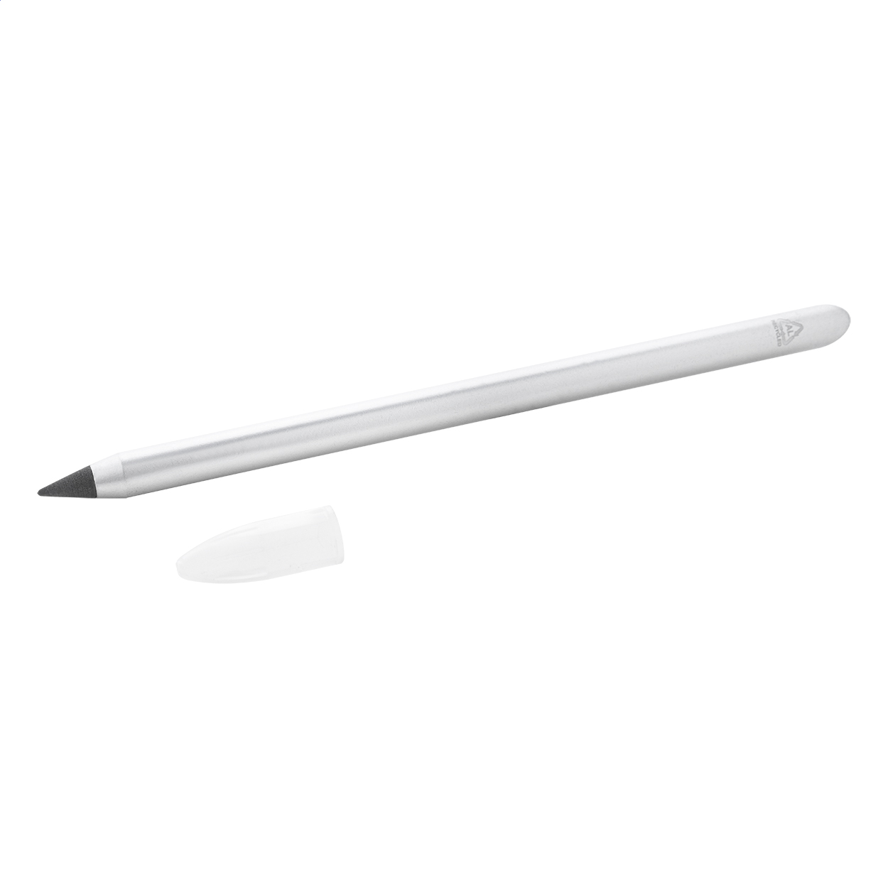 Penna senza inchiostro in alluminio riciclato con punta in lega metallica che ossida la carta. Questa penna scrive in modo simile a una matita ed è anche cancellabile.