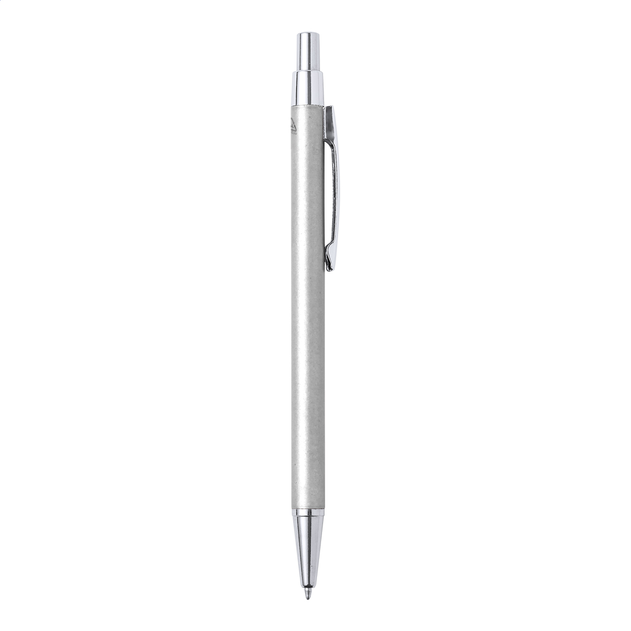 Penna a sfera in alluminio riciclato con inserti cromati. Refill blu.