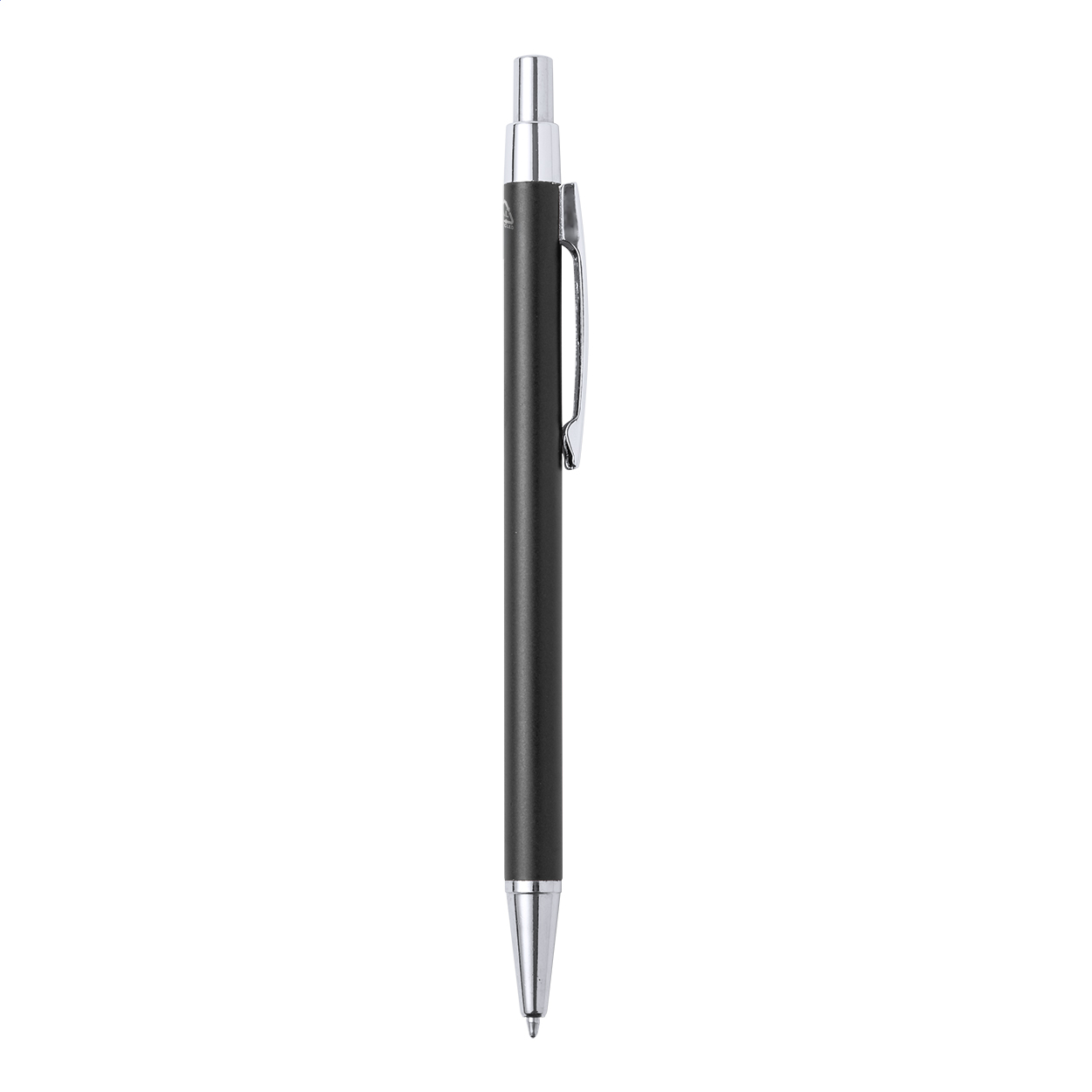 Penna a sfera in alluminio riciclato con inserti cromati. Refill blu.