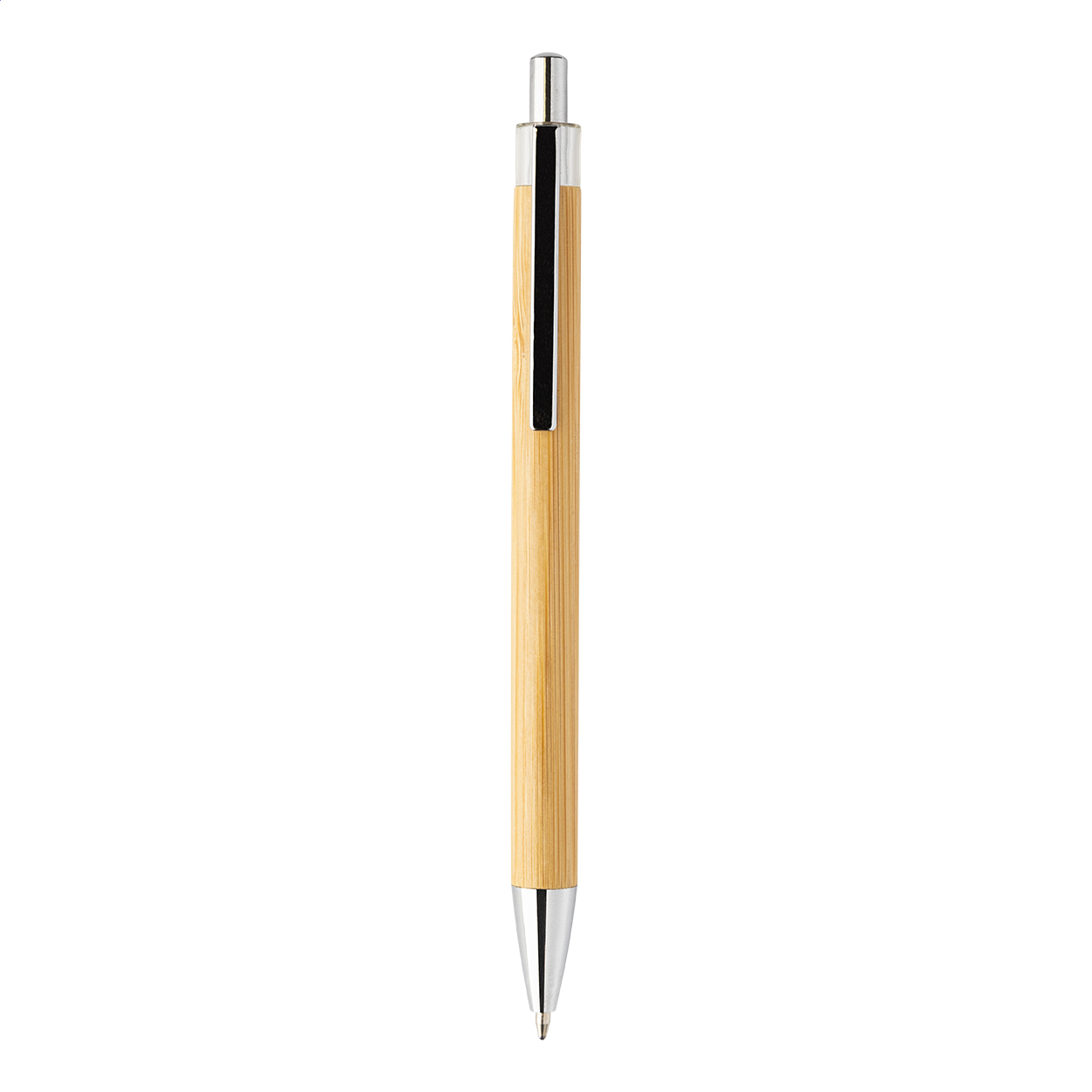 Penna a sfera in bambù con parte superiore trasparente e finiture cromate.