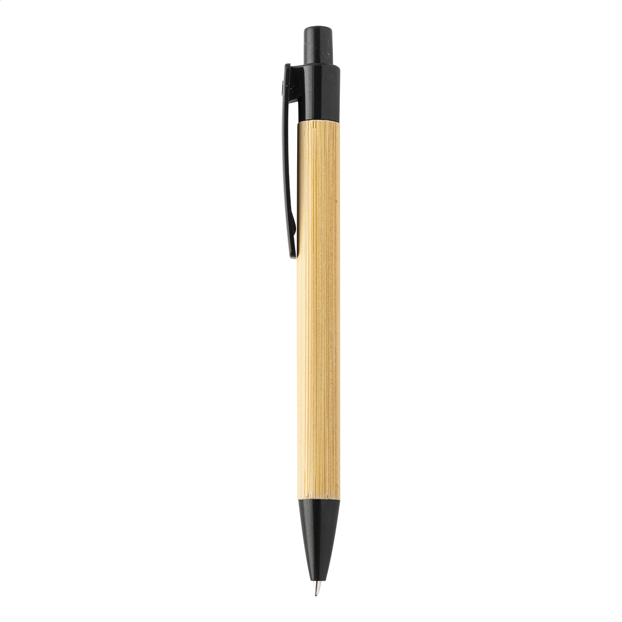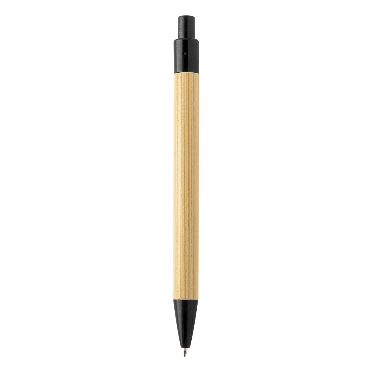 Penna a sfera di bambù con clip e puntale in plastica ecologica ricavata da paglia di grano. Con refill blu.