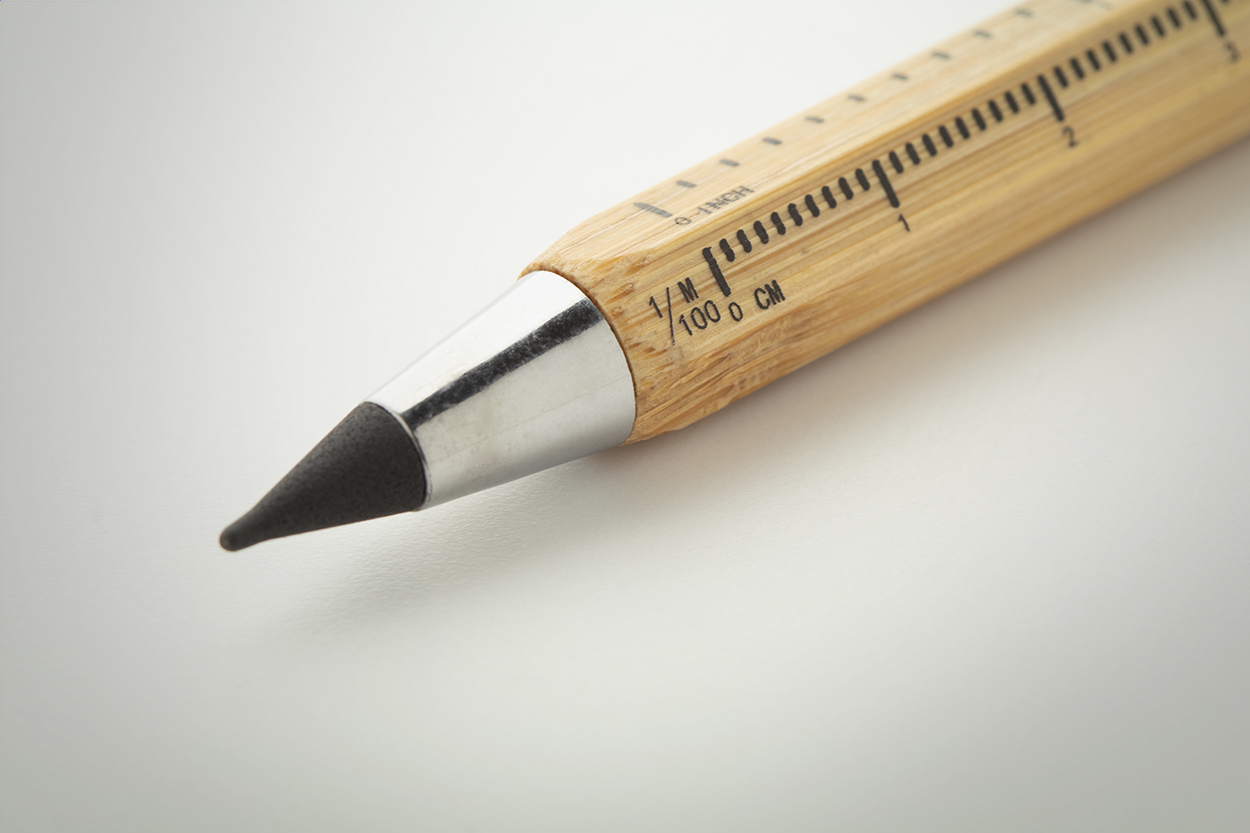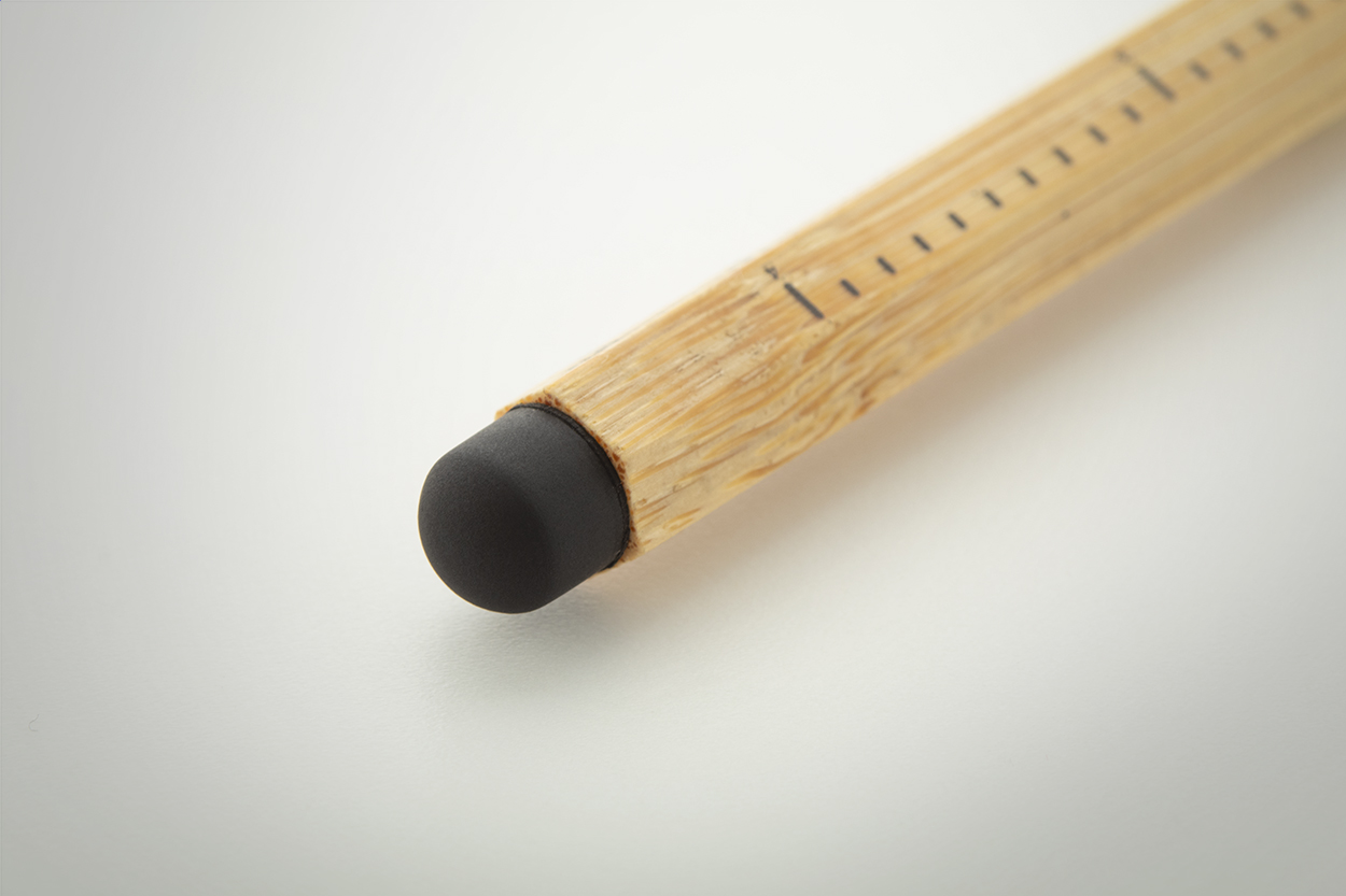 Penna senza inchiostro in bambù a lunga durata con pennino capacitivo e punta in lega metallica che ossida la carta. Fusto esagonale con righelli da 11 cm e 4 pollici. Questa penna scrive in modo simile a una matita ed è anche cancellabile.