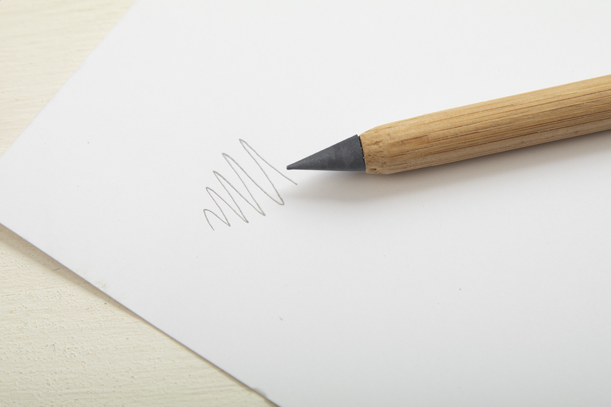 Penna di lunga durata senza inchiostro in bambù con punta in lega metallica che ossida la carta. Questa penna scrive come una matita ed è anche cancellabile.