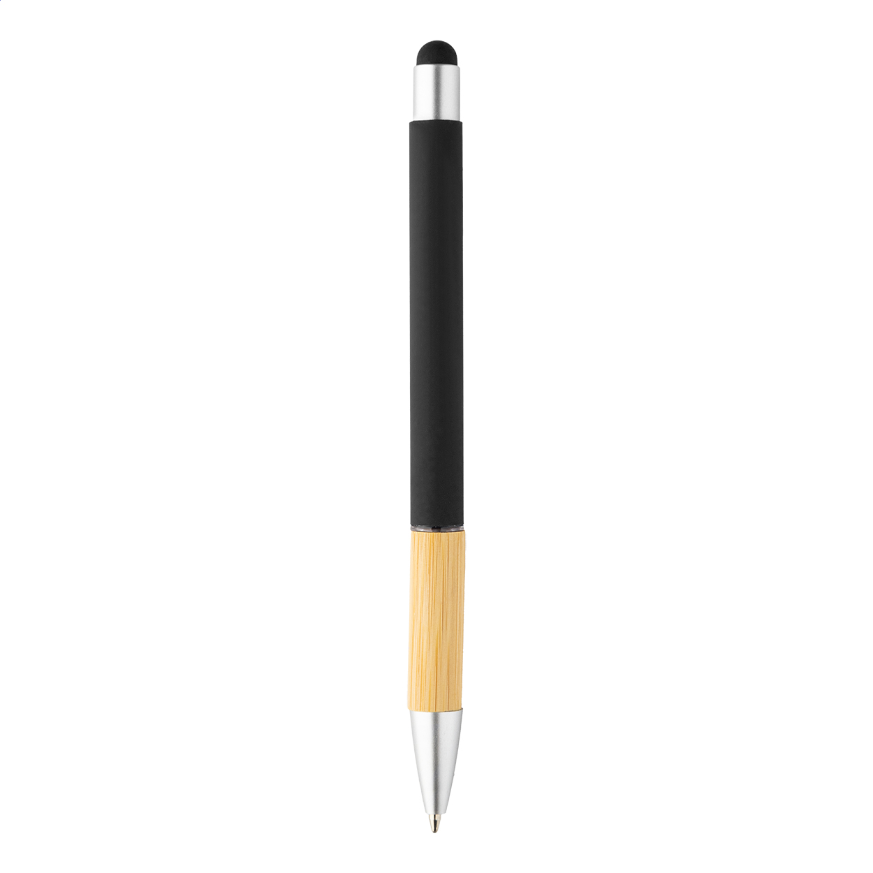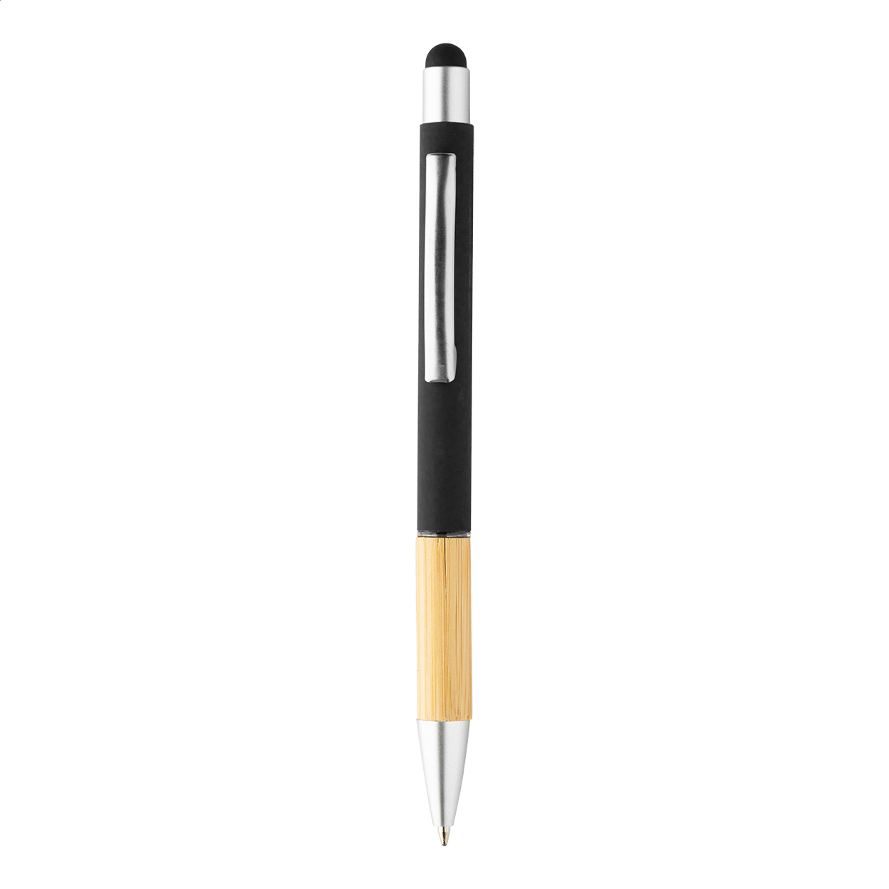Penna a sfera capacitiva in alluminio con impugnatura in bambù e finitura opaca. Con refill blu.