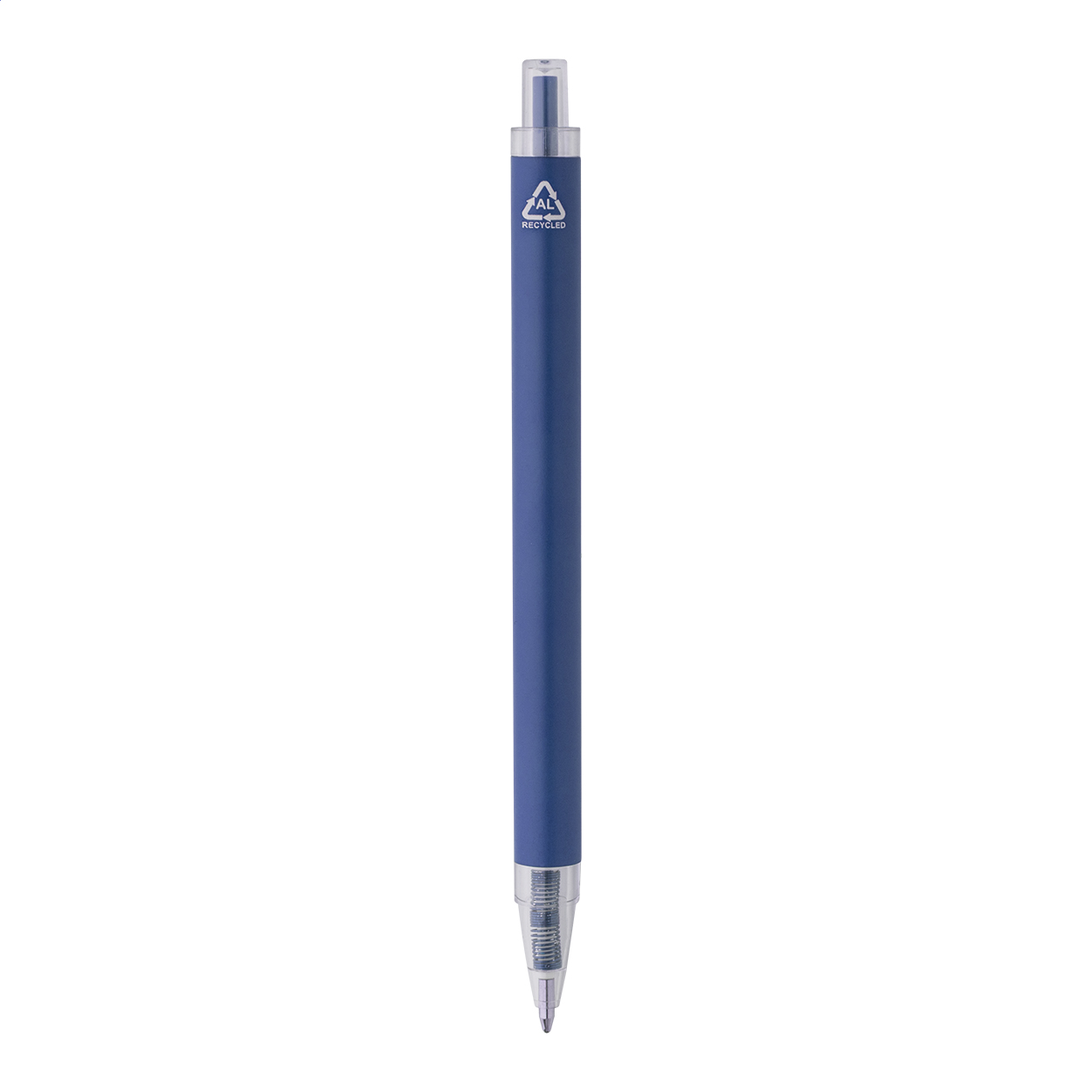 Penna a sfera in alluminio riciclato con corpo opaco e parti trasparenti in RPET. Refill blu.