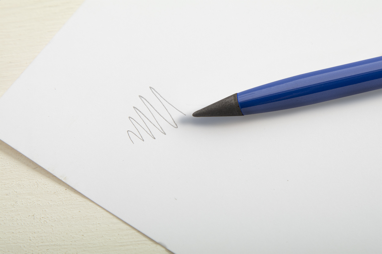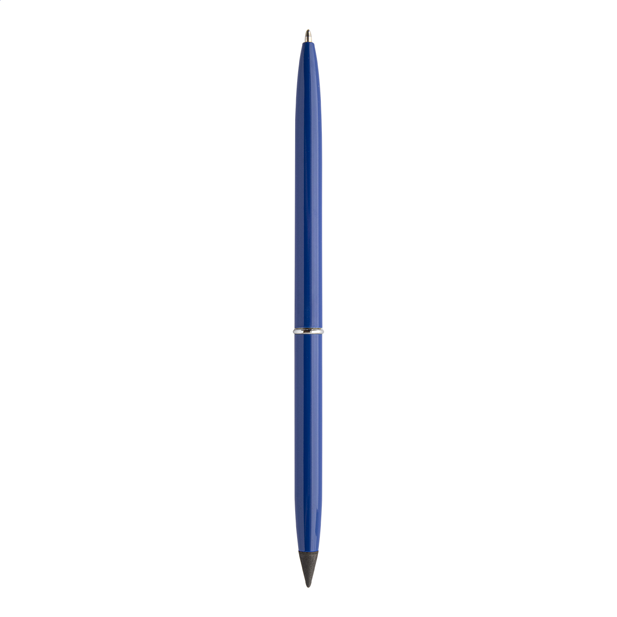 2in1, penna a sfera con meccanismo a rotazione in alluminio riciclato e penna senza inchiostro. Con refill blu e punta in lega metallica che ossida la carta. Questa penna scrive come una matita ed è anche cancellabile.