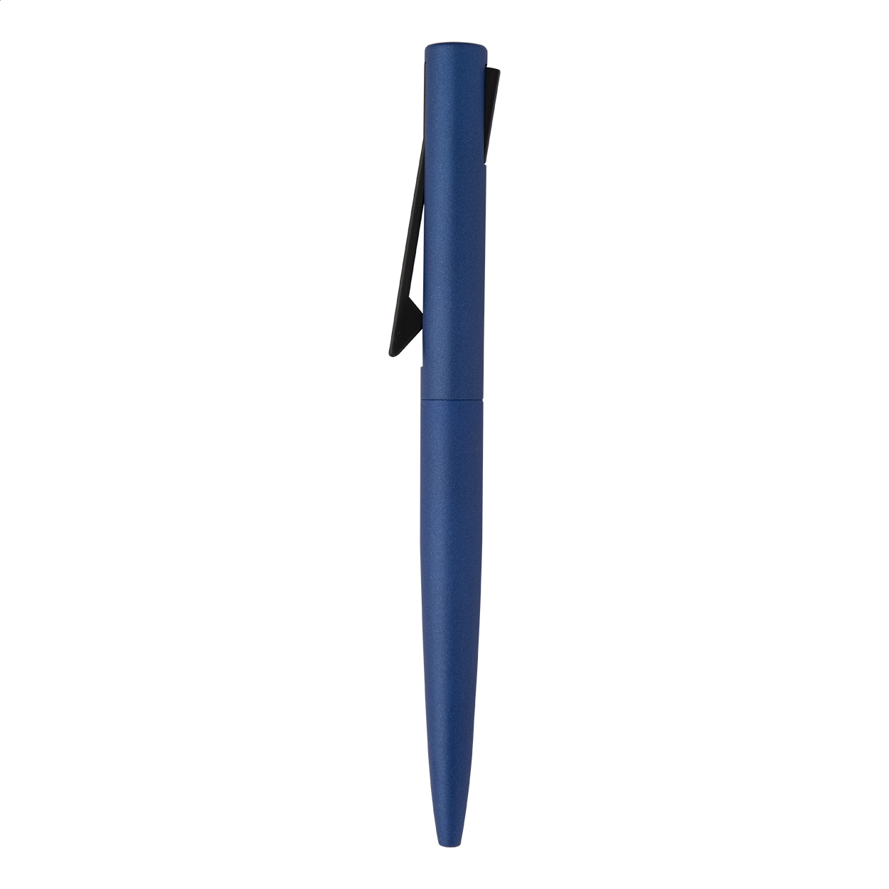 Penna a sfera in alluminio riciclato in colore metallizzato opaco, con refill blu, fusto superiore in ABS riciclato e speciale movimento a clip.