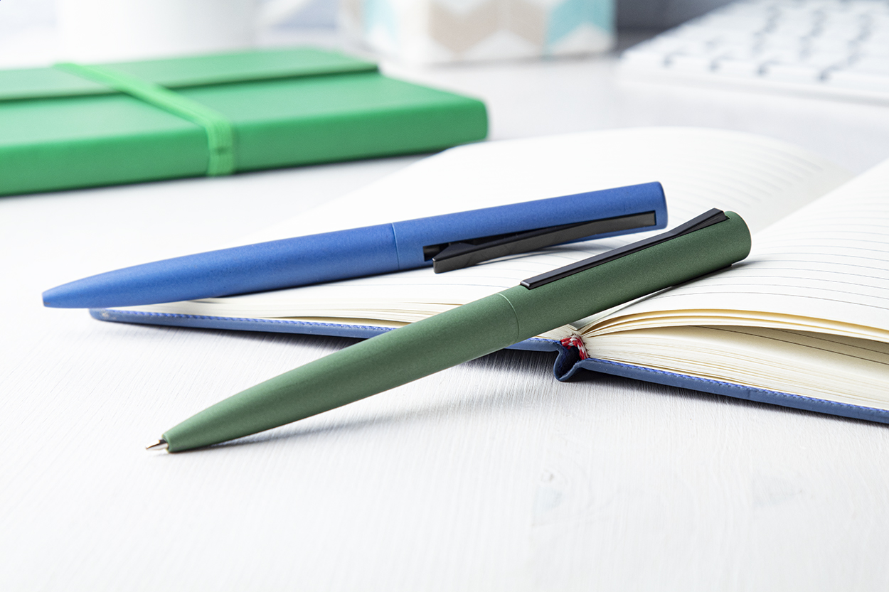 Penna a sfera in colore metallizzato opaco, con fusto in alluminio e speciale movimento a clip. Con refill blu.