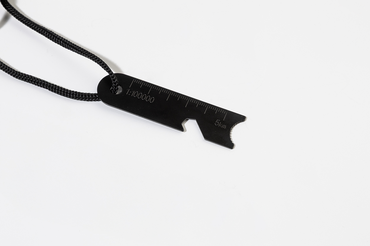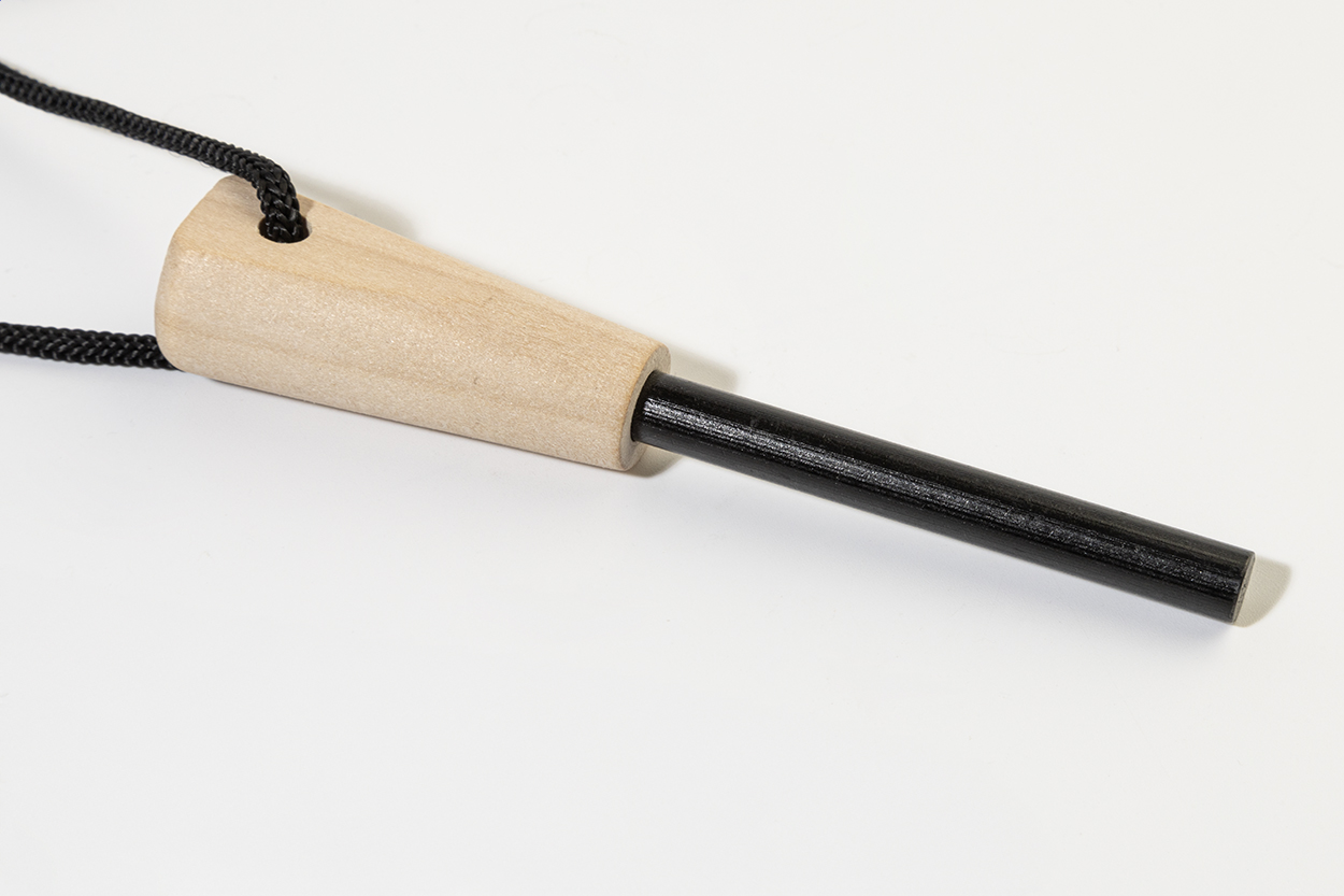 Attrezzo per accendere il fuoco con manico in legno e raschietto multifunzionale in acciaio completo di righello, apribottiglie e chiave esagonale.