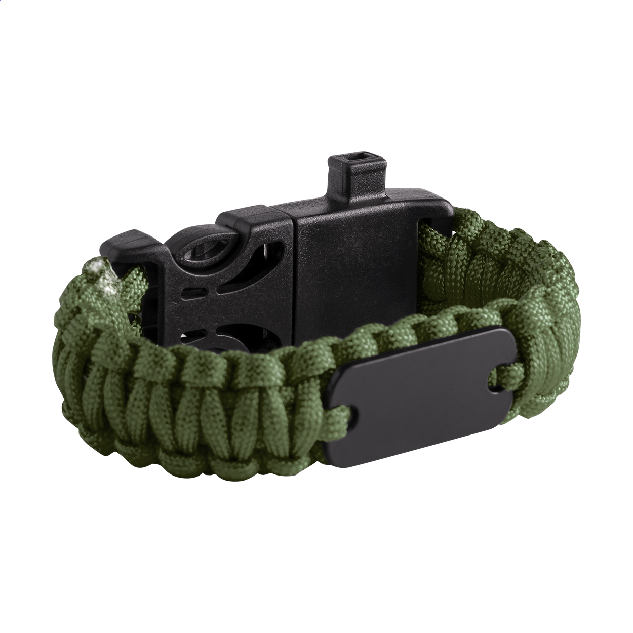 Bracciale di sopravvivenza multifunzione in paracord di nylon con bussola, fischietto e pietra focaia accendi fuoco.