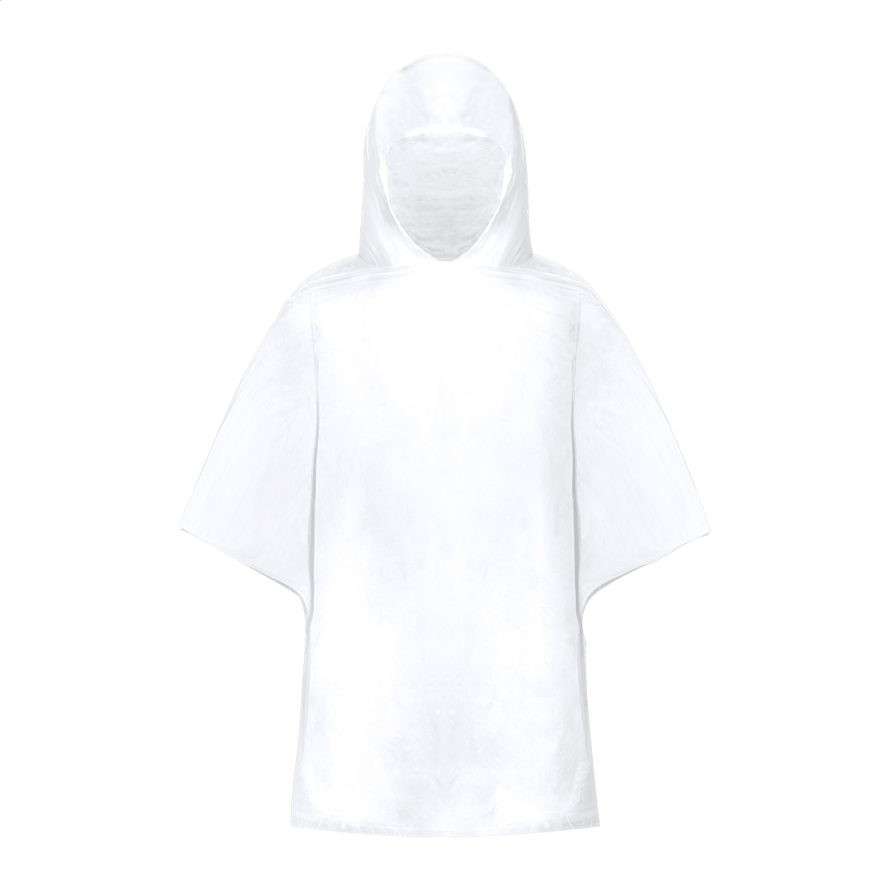Poncho trasparente in LDPE per bambini, con custodia in poliestere RPET, etichetta RPET e moschettone in alluminio.