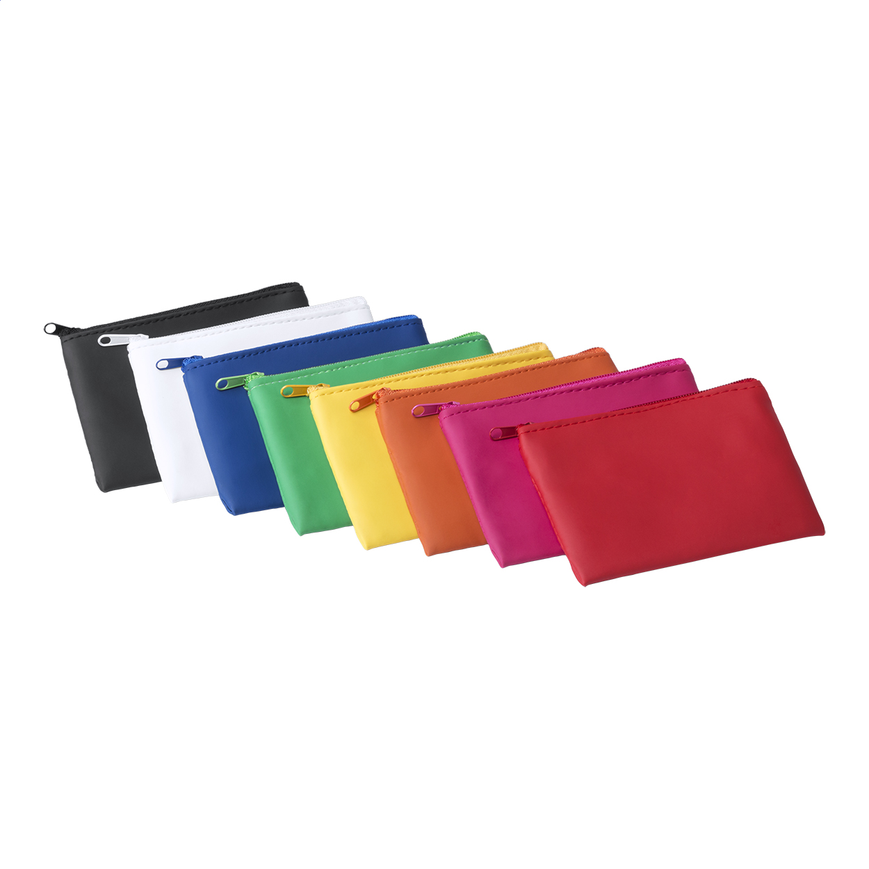Portamonete in microfibra con cerniera e portachiavi.