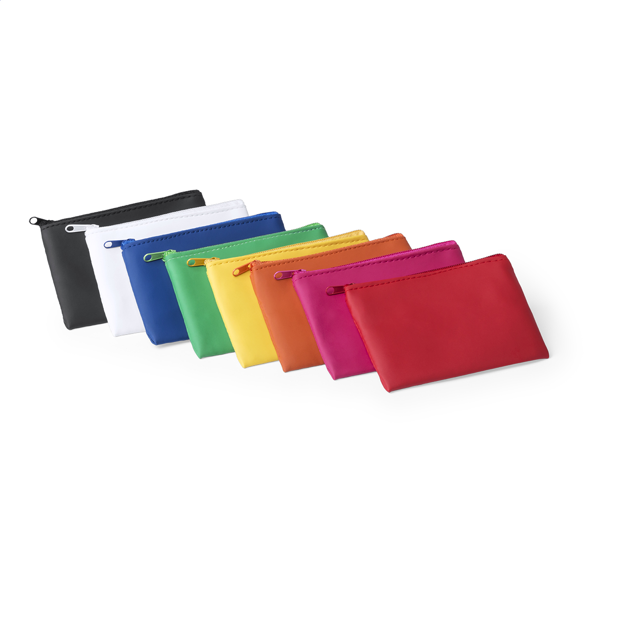 Portamonete in microfibra con cerniera e portachiavi.