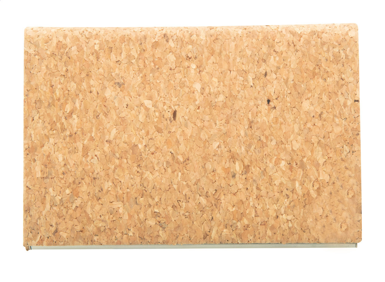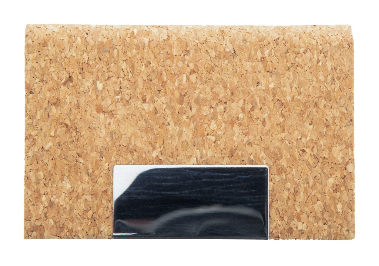 Portabiglietti da visita in metallo con rivestimento in sughero naturale.