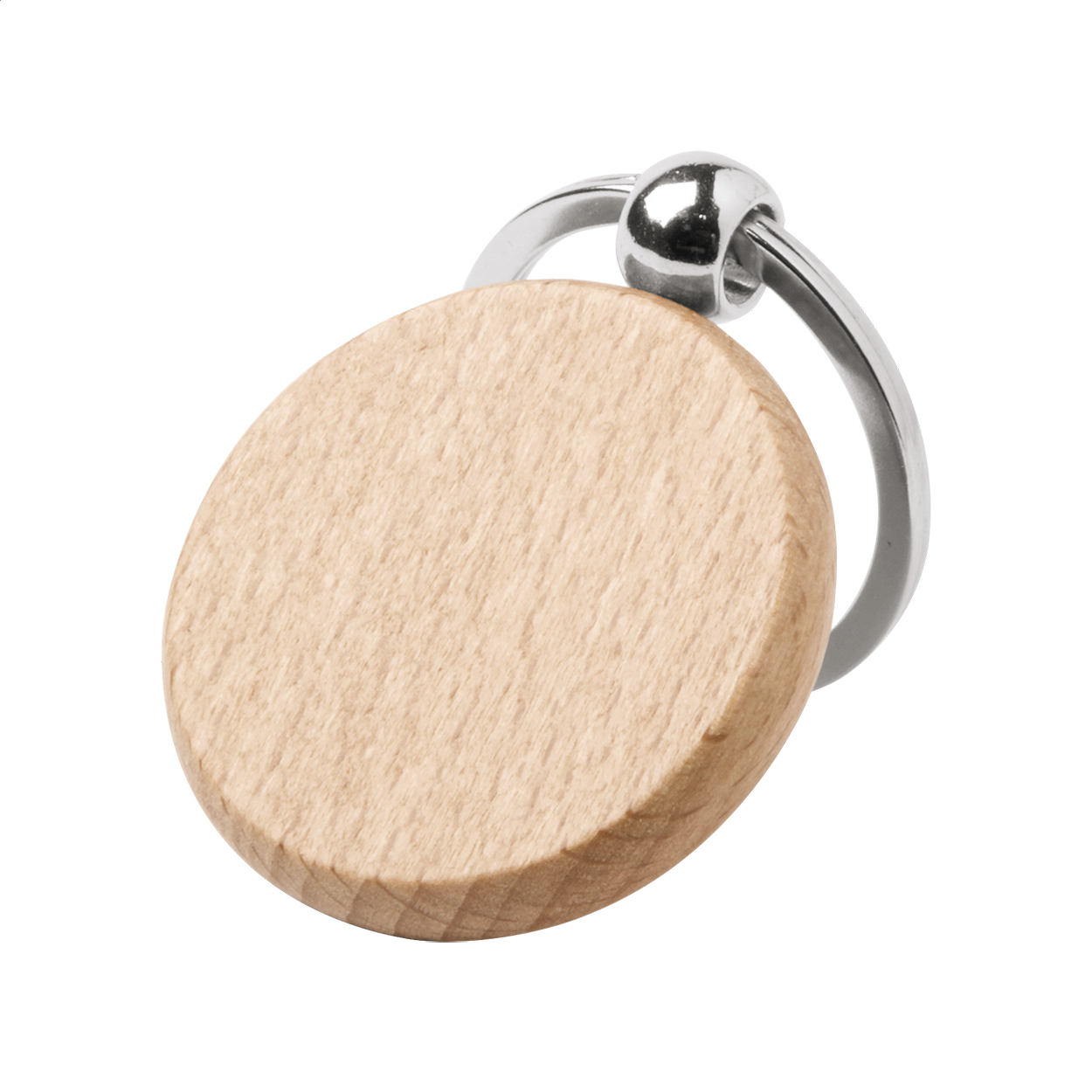 Portachiavi in legno di faggio naturale con anello in metallo.