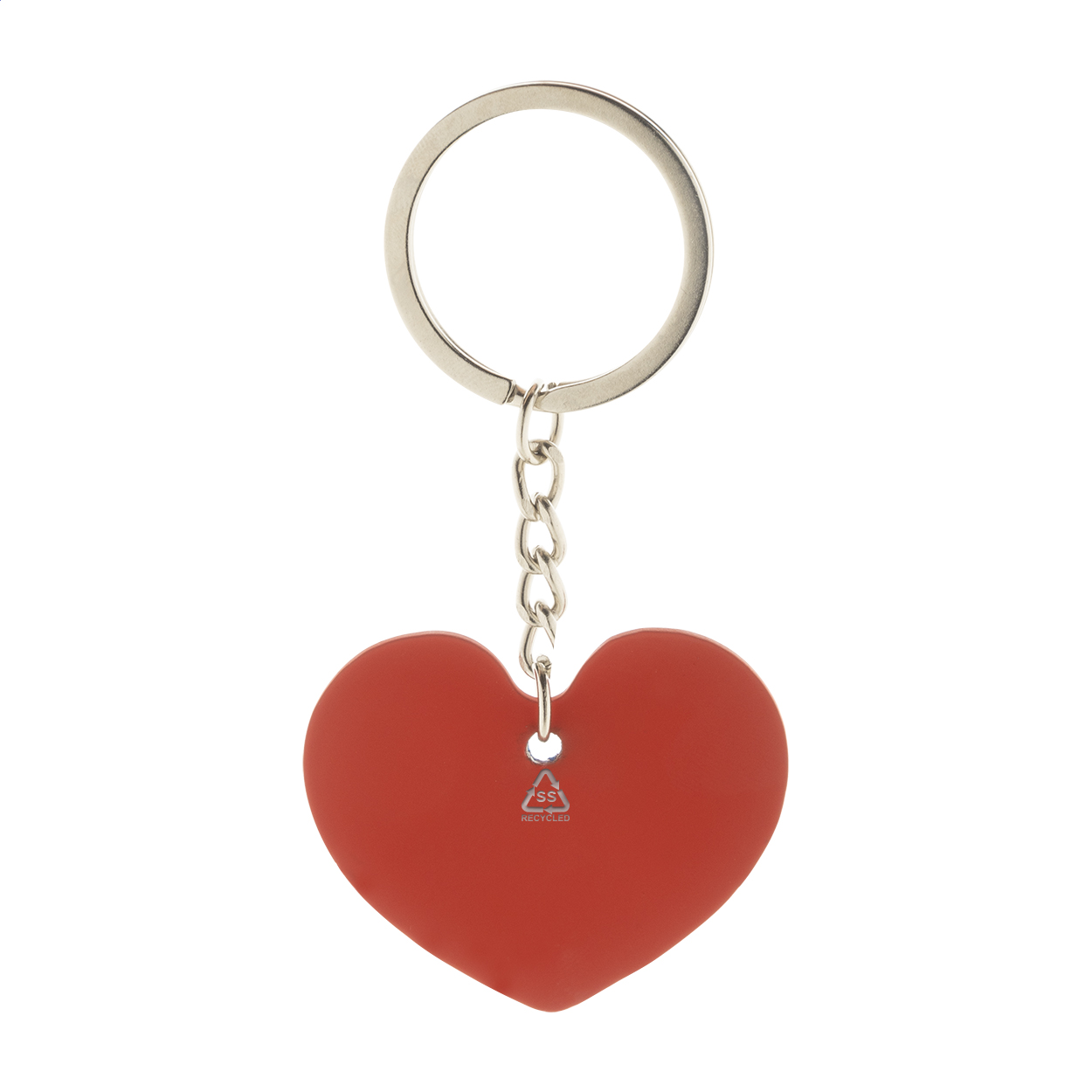 Portachiavi in acciaio riciclato a forma di cuore con finitura gommata. Trattamento speciale che permette l'incisione laser a specchio.
