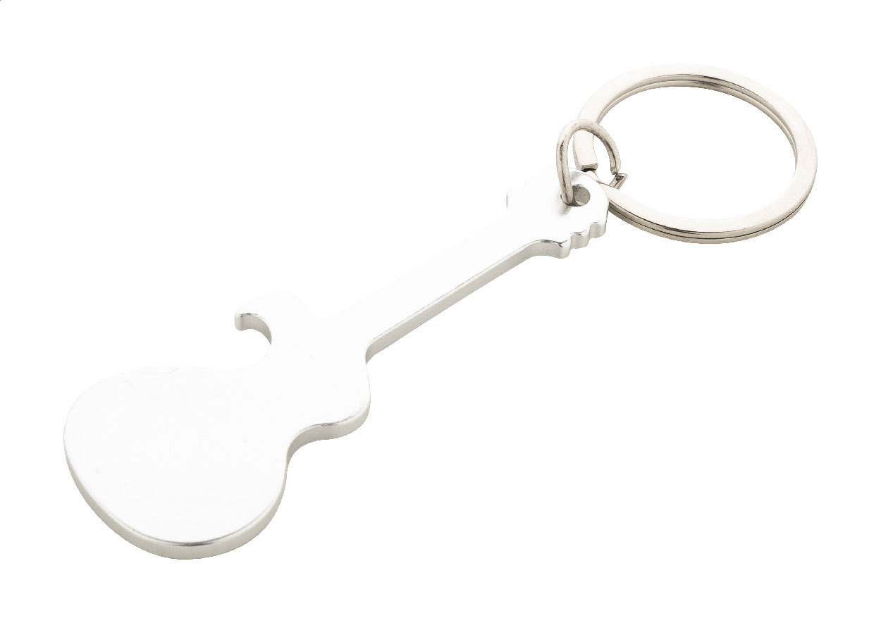 Portachiavi in alluminio a forma di chitarra con funzione apribottiglie.