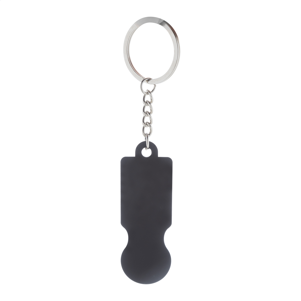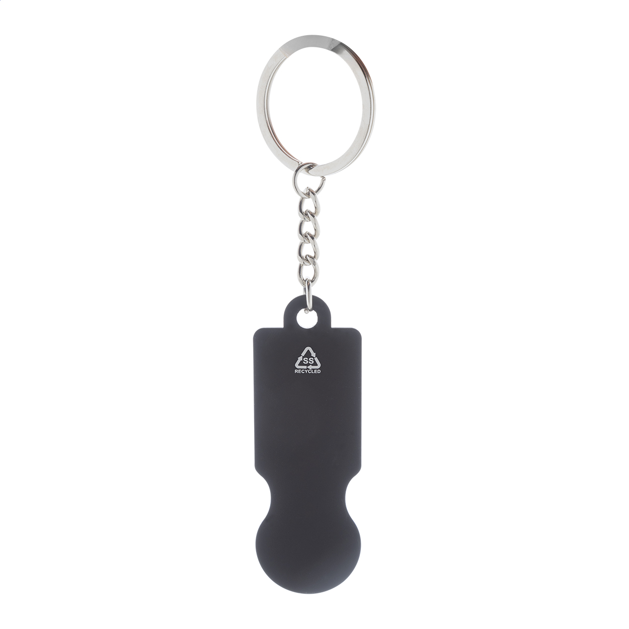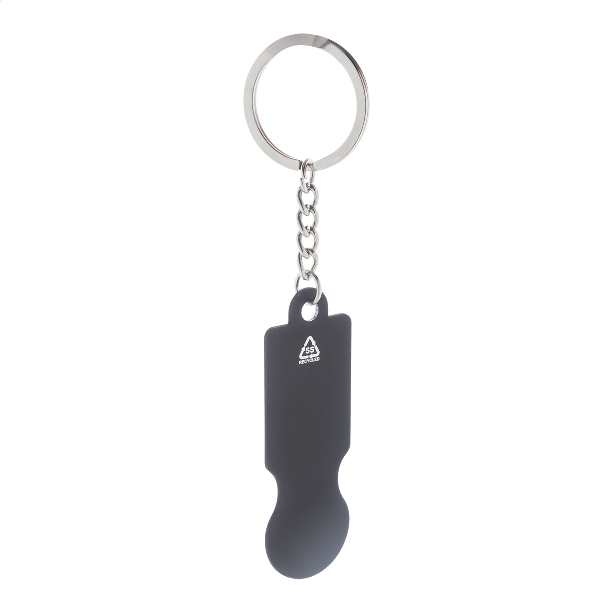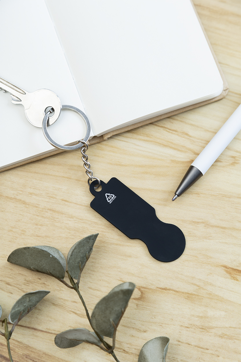 Portachiavi in acciaio riciclato con finitura gommata ideale per l'incisione laser a specchio ed inserto per il carrello della spesa.