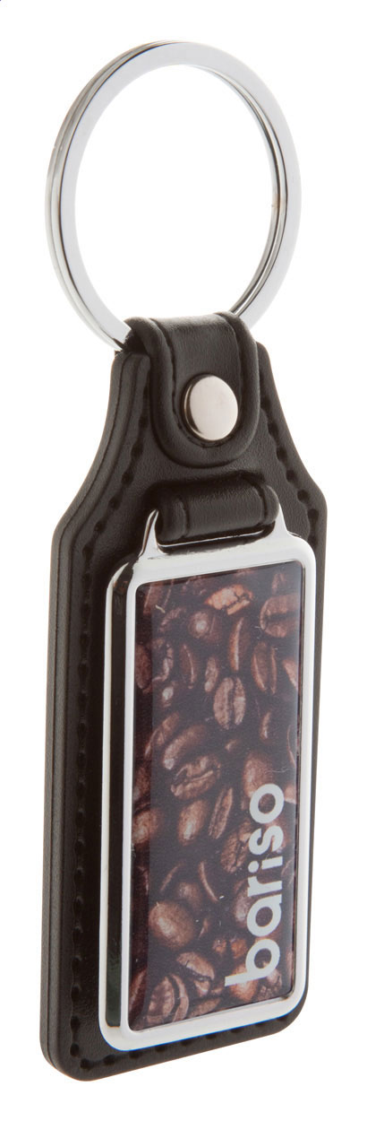 Portachiavi rettangolare in pelle PU con anello in metallo e stampa con resina epossidica. Il prezzo include la stampa epossidica.