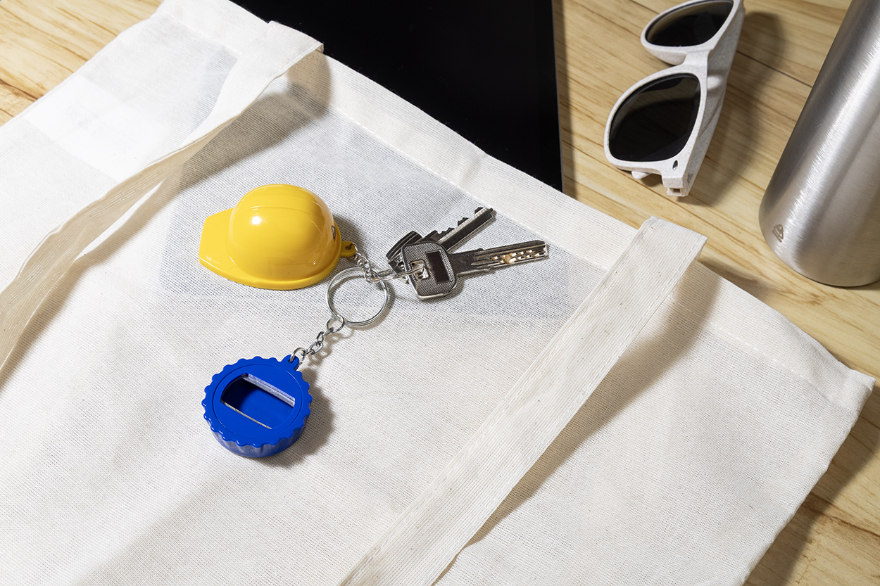 Portachiavi in ABS riciclato a forma di tappo di bottiglia con apribottiglie.
