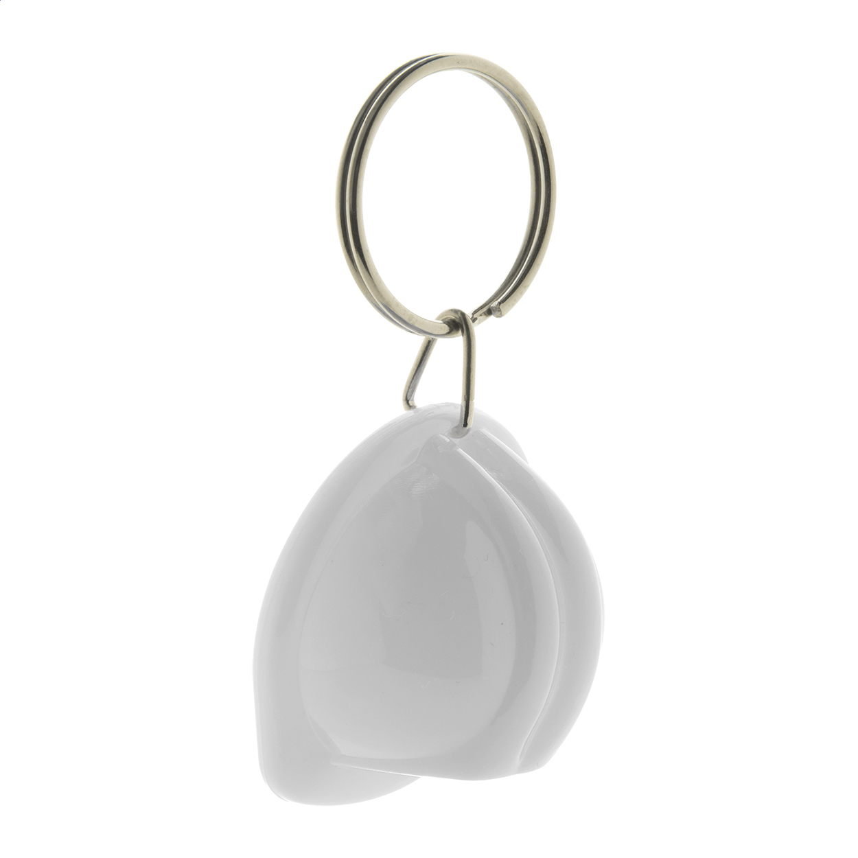 Portachiavi a forma di casco di sicurezza in plastica.