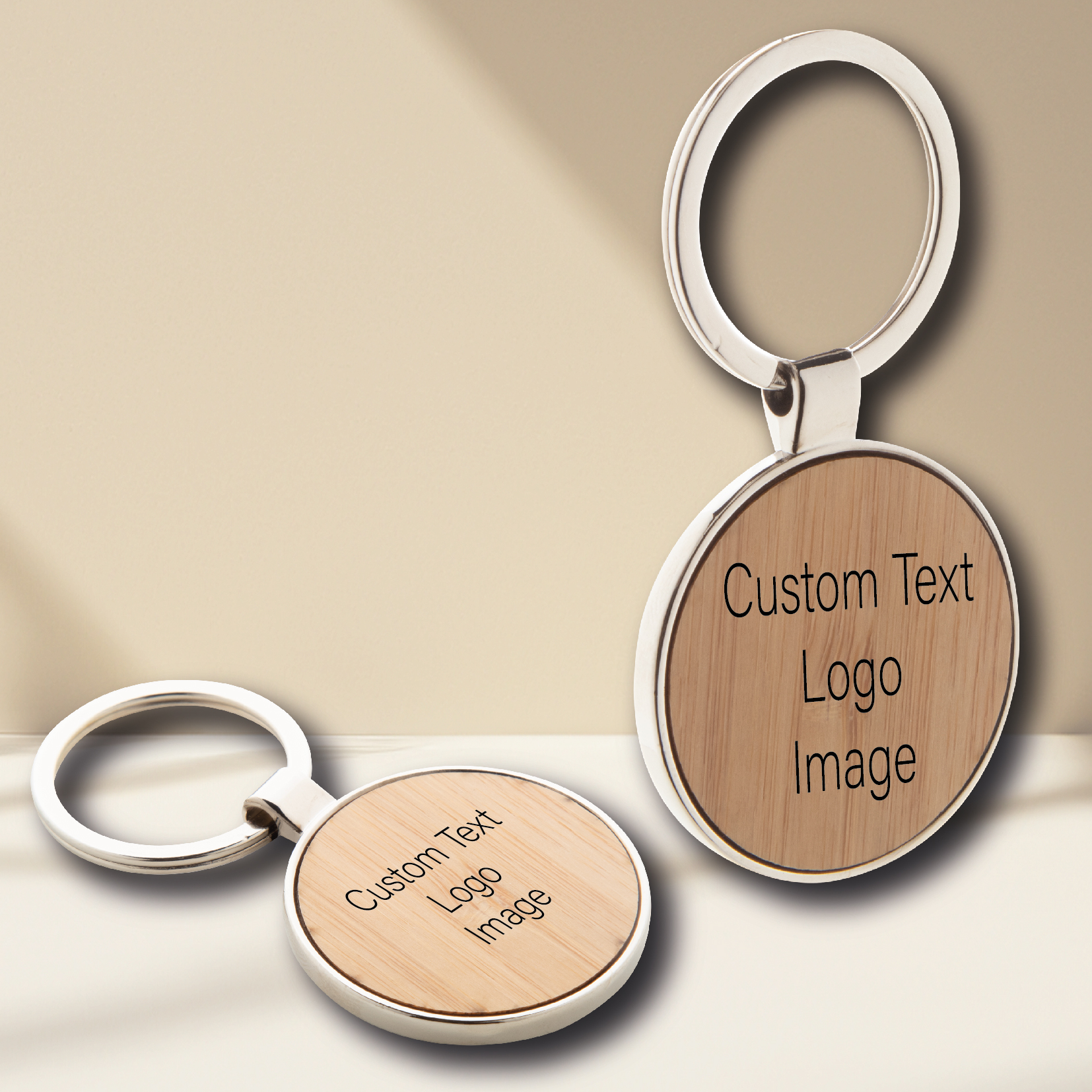 Portachiavi in Metallo BORBY con Inserto Bambù Personalizzato