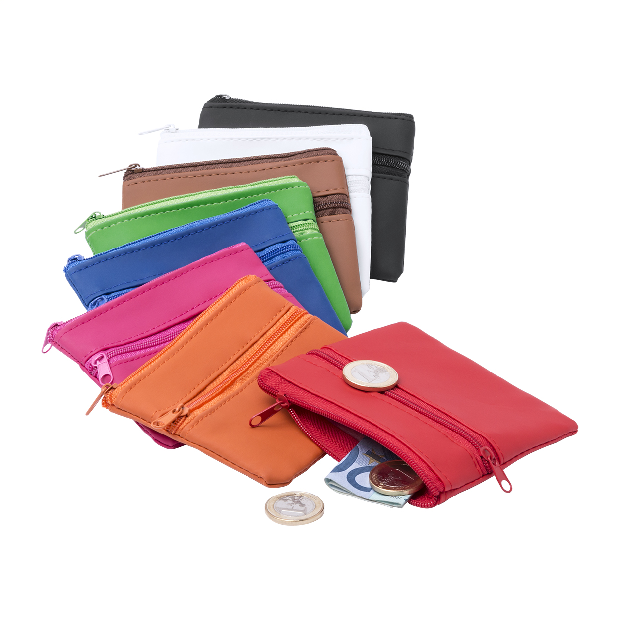 Portamonete in microfibra con zip.