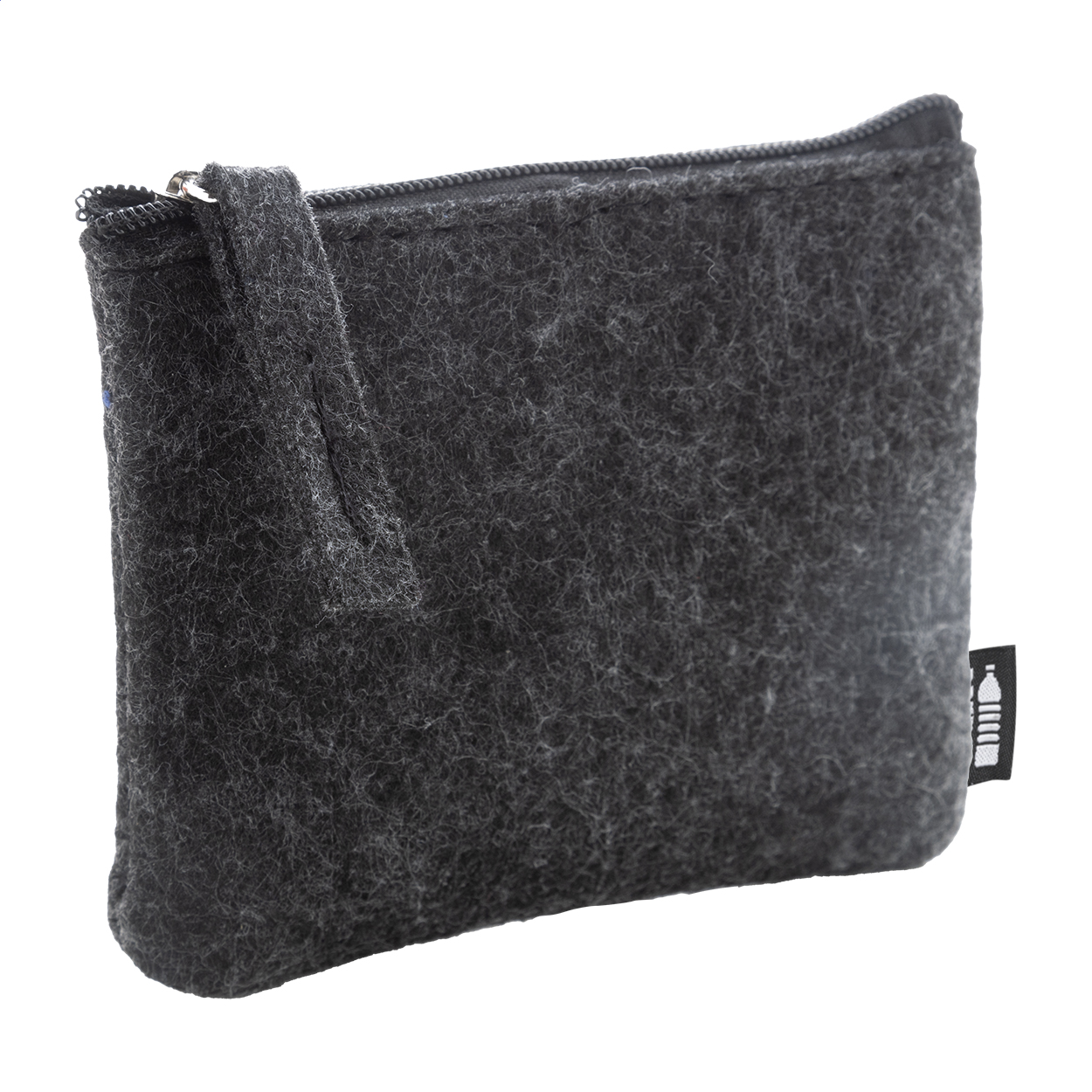 Borsellino in feltro RPET con cerniera ed etichetta RPET.