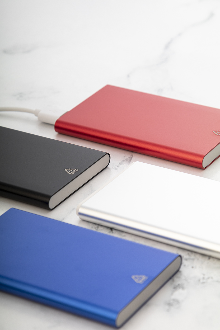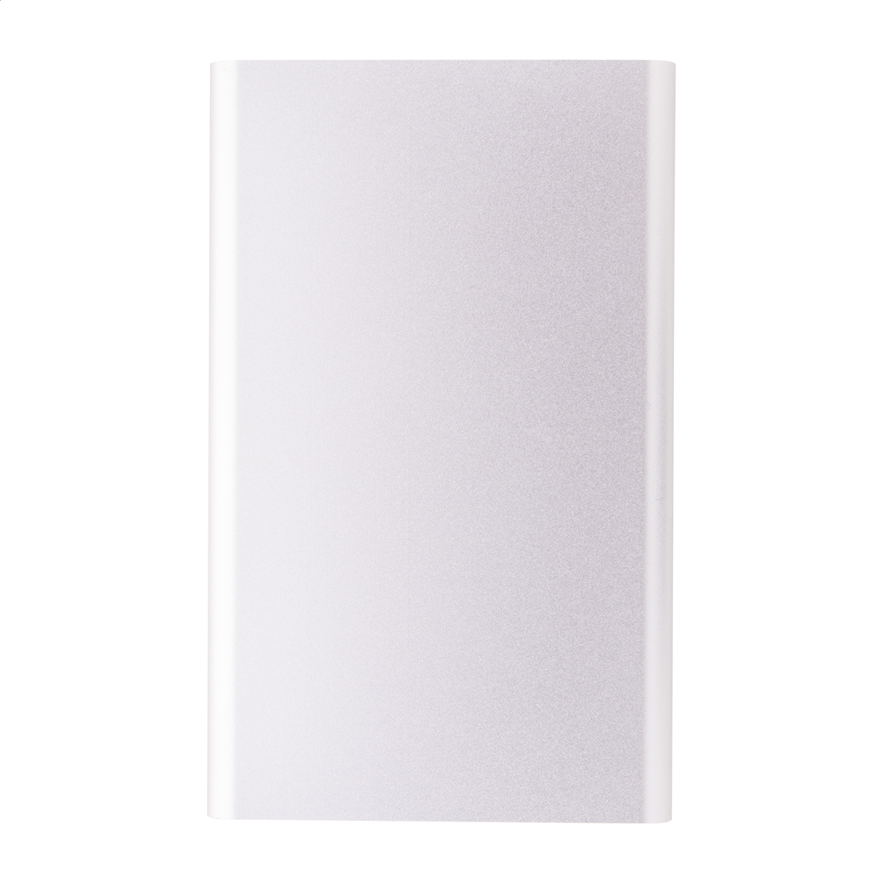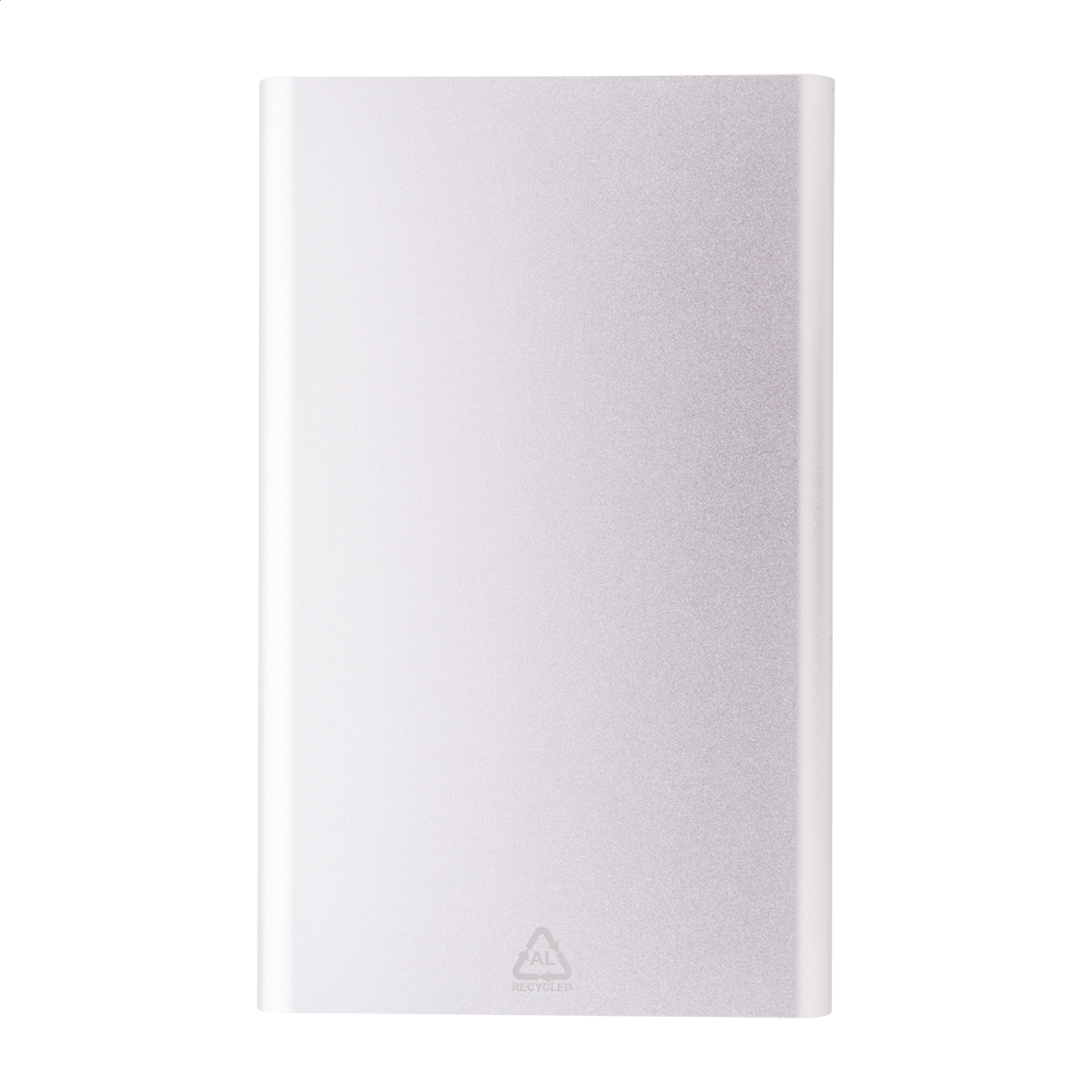 Power bank USB in alluminio riciclato con batteria da 4000 mAh. Con 1 porta di ricarica USB e 1 USB-C. Porta di ingresso USB-C. Cavo di ricarica USB incluso.