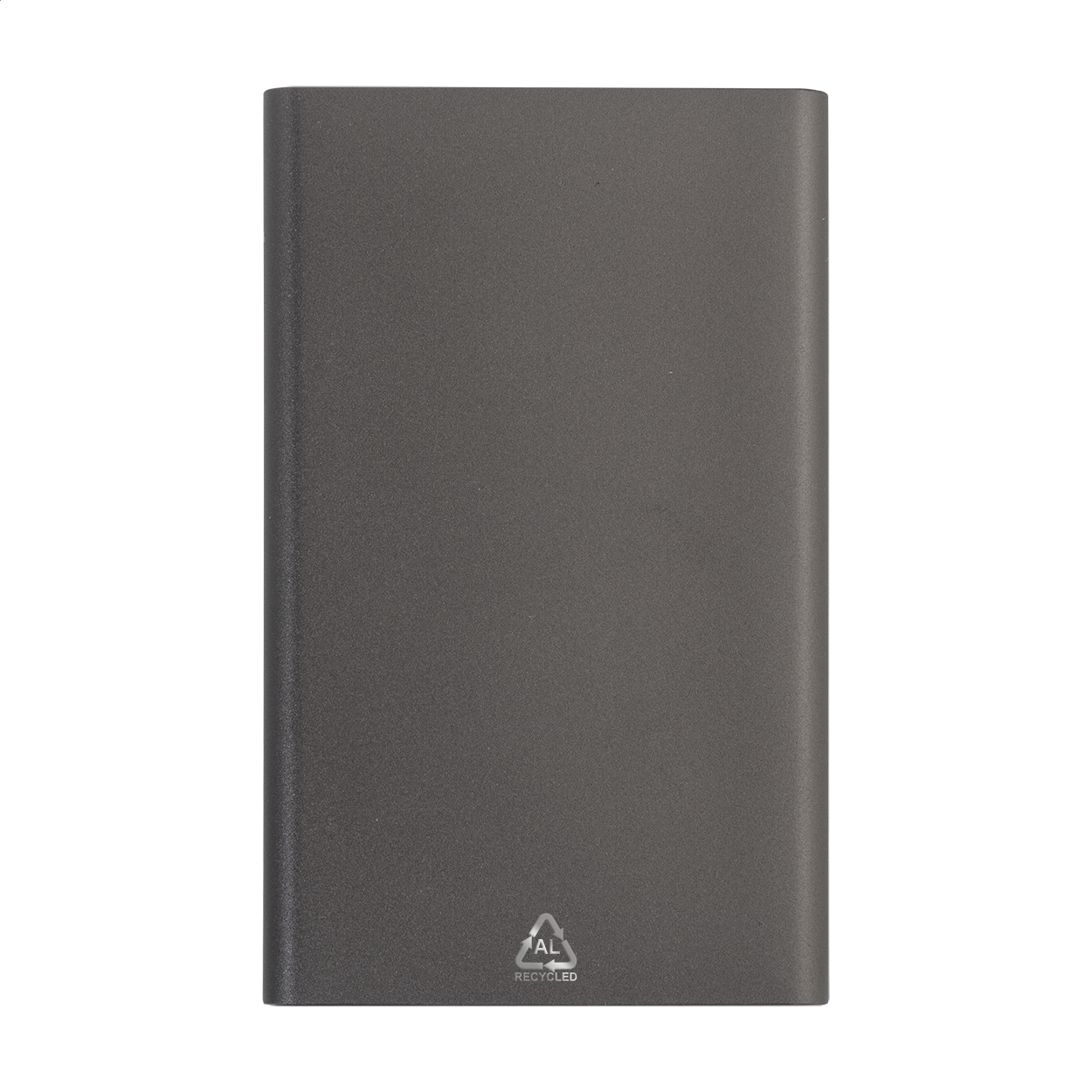 Power bank USB in alluminio riciclato con batteria da 4000 mAh. Con 1 porta di ricarica USB e 1 USB-C. Porta di ingresso USB-C. Cavo di ricarica USB incluso.