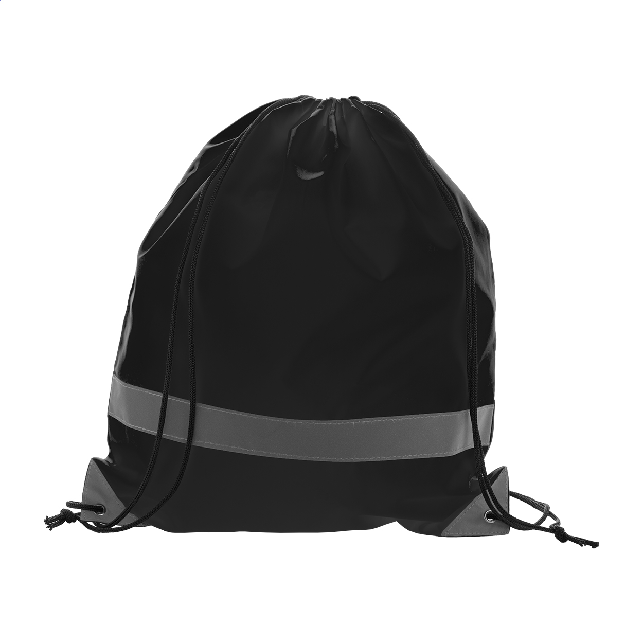 Sacca in poliestere 190T con strisce riflettenti alta visibilità. Solo per uso promozionale, il prodotto non può essere considerato un dispositivo di protezione personale.