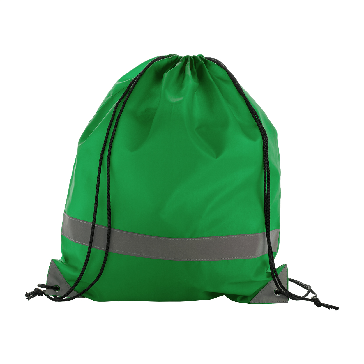 Sacca in poliestere 190T con strisce riflettenti alta visibilità. Solo per uso promozionale, il prodotto non può essere considerato un dispositivo di protezione personale.