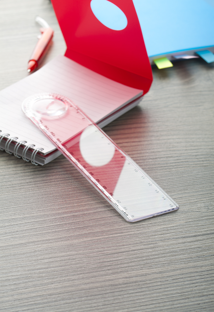 Righello in plastica di 15 cm con lente di ingrandimento.