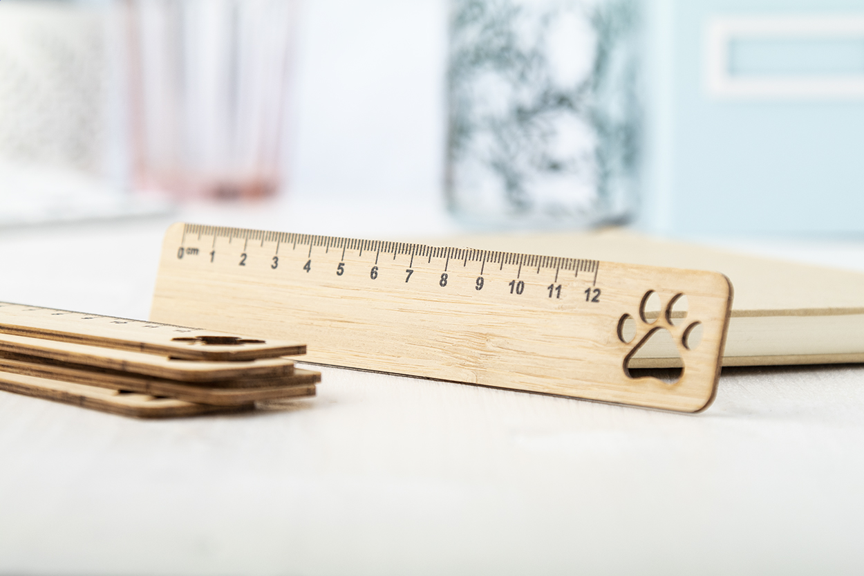 Righello in compensato di bambù da 12 cm con motivo decorativo intagliato.