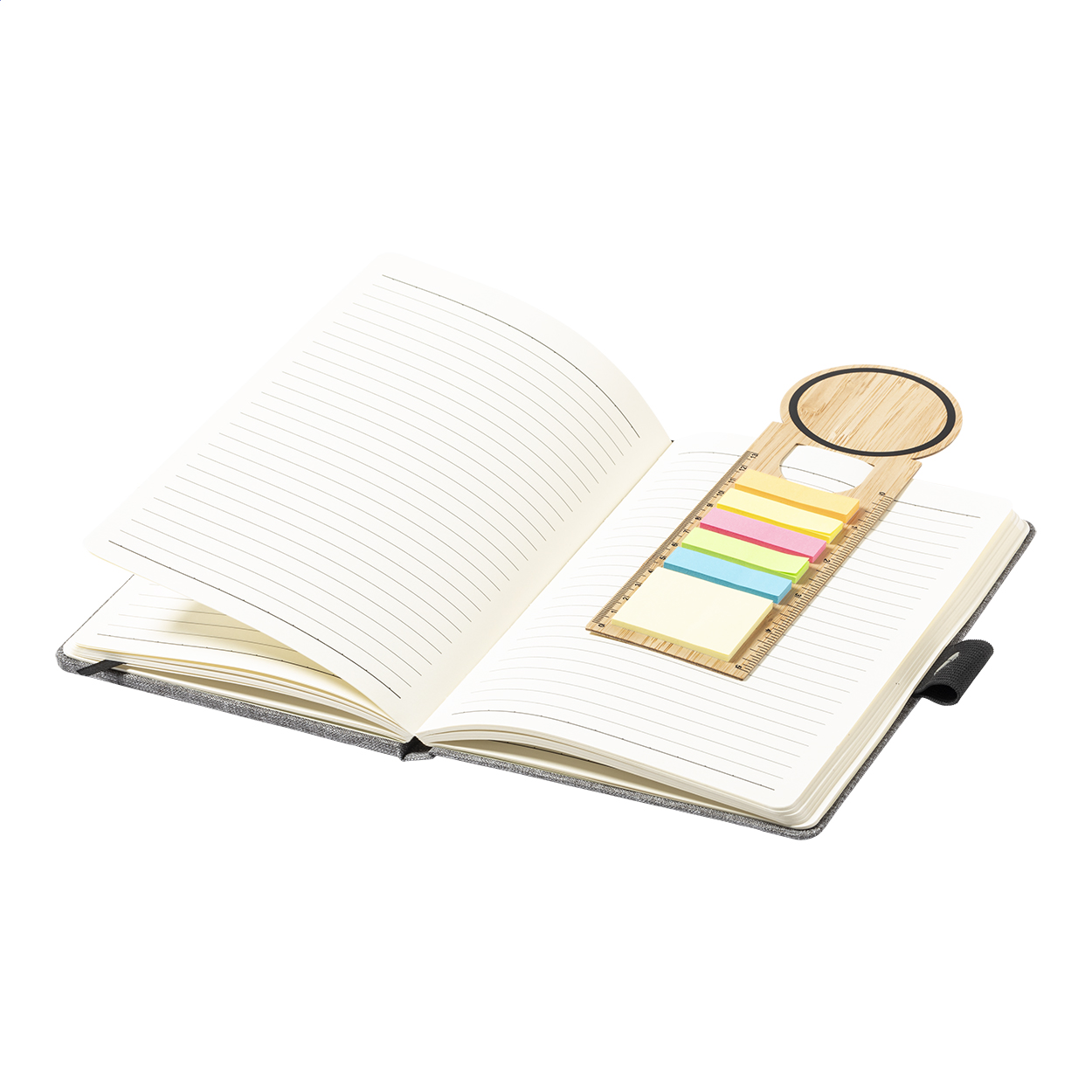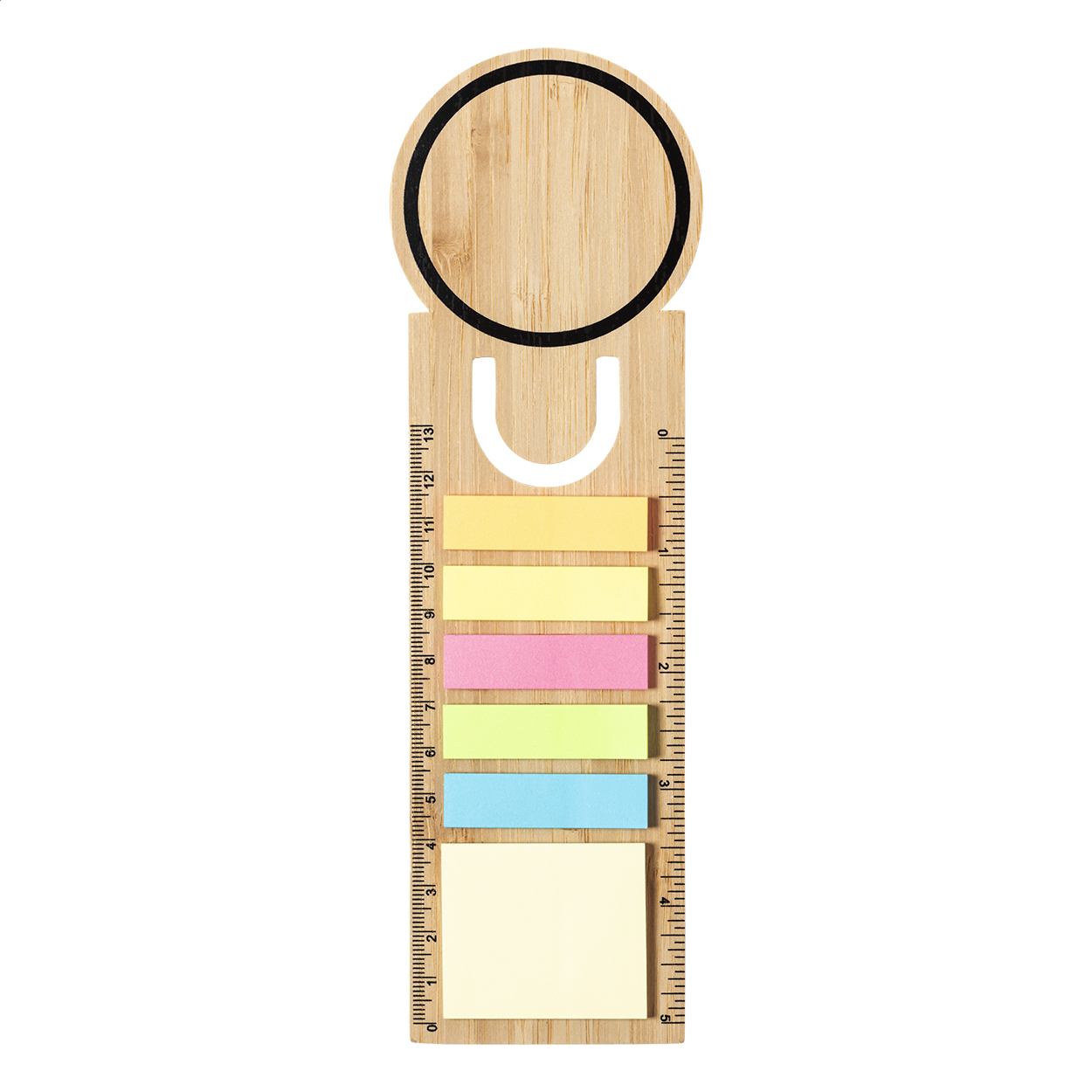 Segnalibro e righello di bambù con 25 foglietti adesivi grandi e 125 piccoli (in 5 colori diversi).