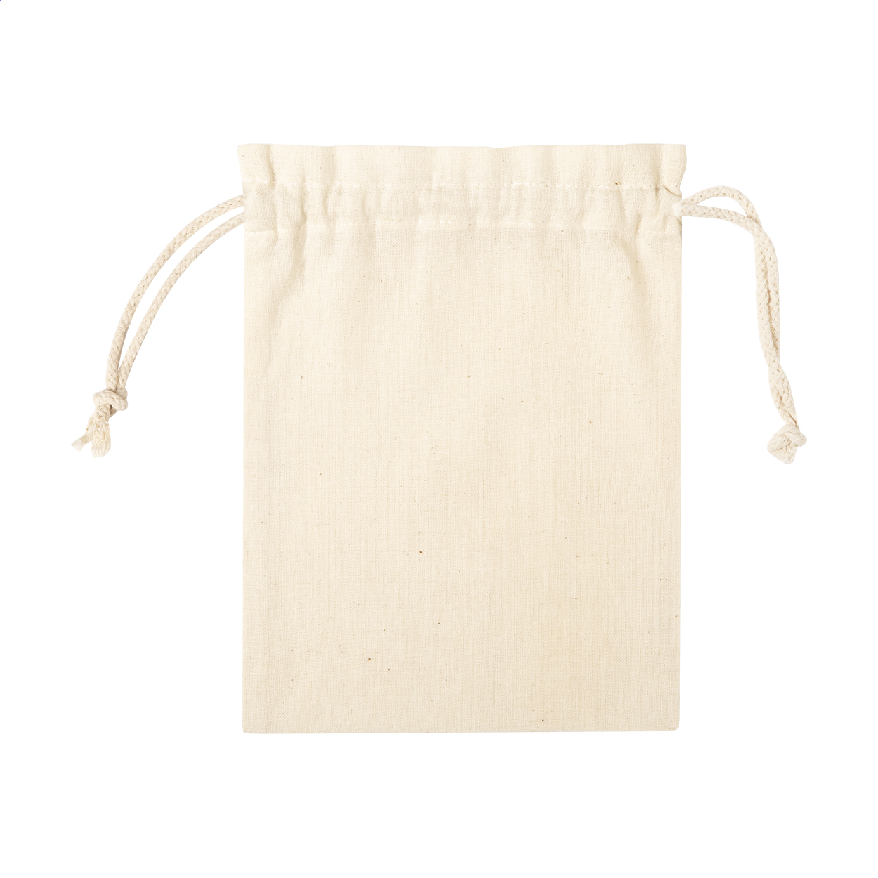 Sacca riutilizzabile in 100% cotone con chiusura a coulisse, peso 105 g/m².