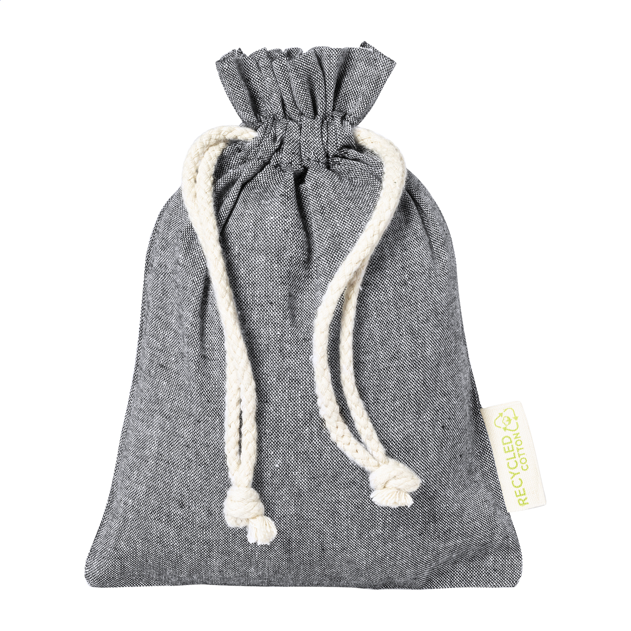 Sacca per alimenti riutilizzabile in cotone riciclato con chiusura a coulisse. 100% cotone riciclato, 120 g/m².
